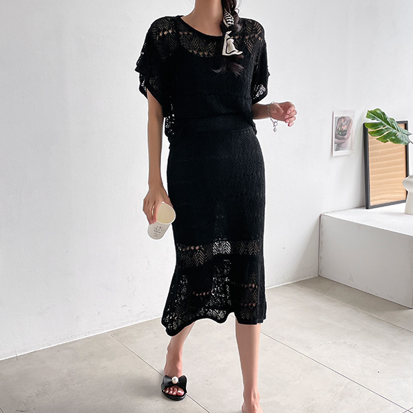 자체제작/페미닌 니트&스커트 세트 #38562