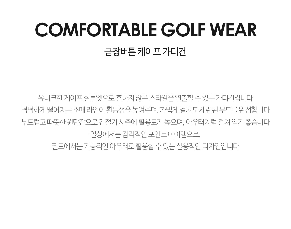 - 가볍게 걸쳐도 따뜻함을 유지할 수 있어 라운딩 전후 스타일리시하게 착용 가능