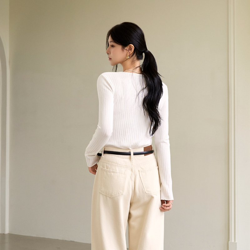 - 세로 골지 조직으로 슬림하고 길어 보이는 실루엣 연출