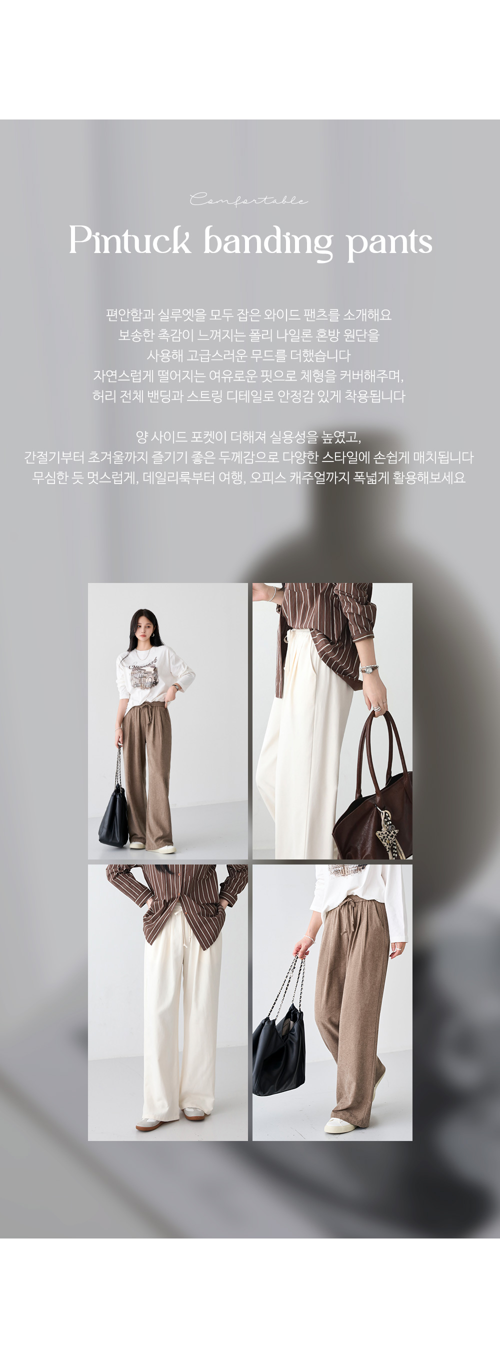 보송 와이드 핀턱 밴딩 팬츠 #710884