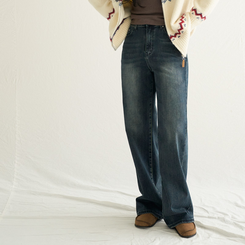 [숏/중/롱] 히트웜 일자와이드 워싱 데님팬츠 #710590