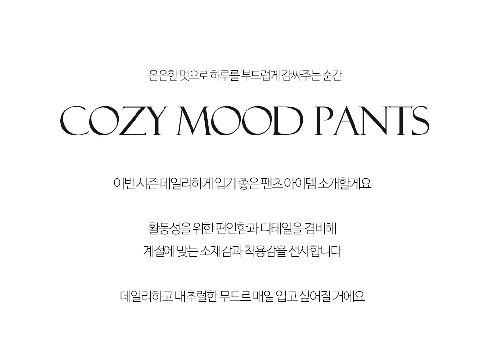 - 전체 허리밴딩으로 장시간 착용에도 편안한 착용감