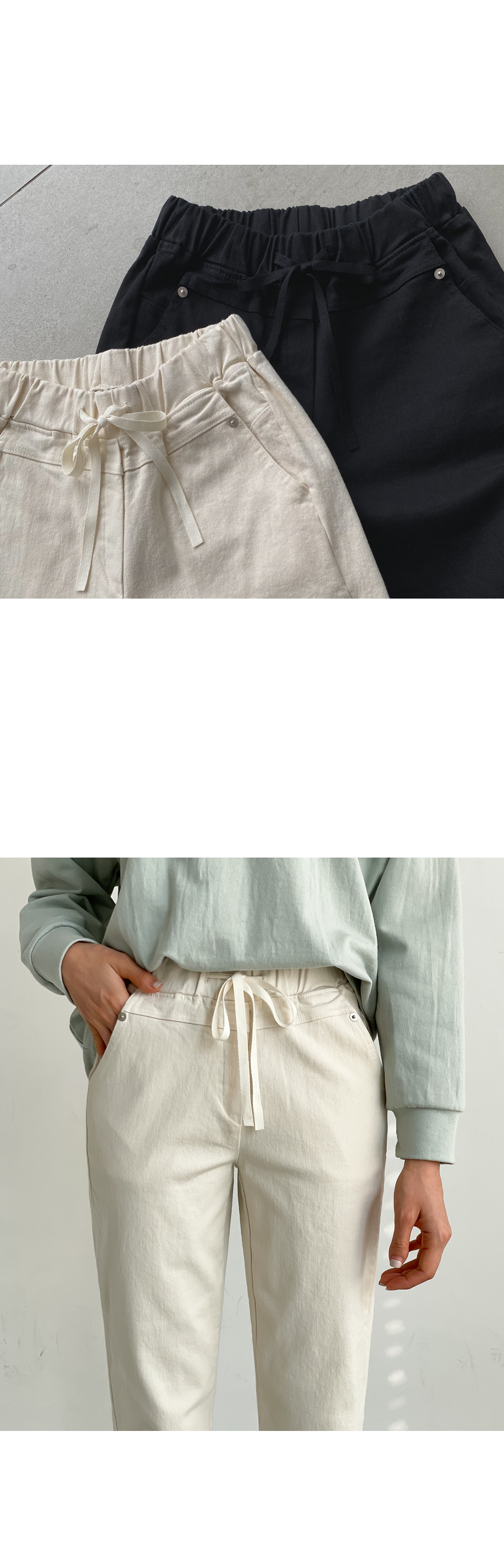 베이직한 컬러감과 낙낙한 핏으로 데일리로 좋은 팬츠입니다.