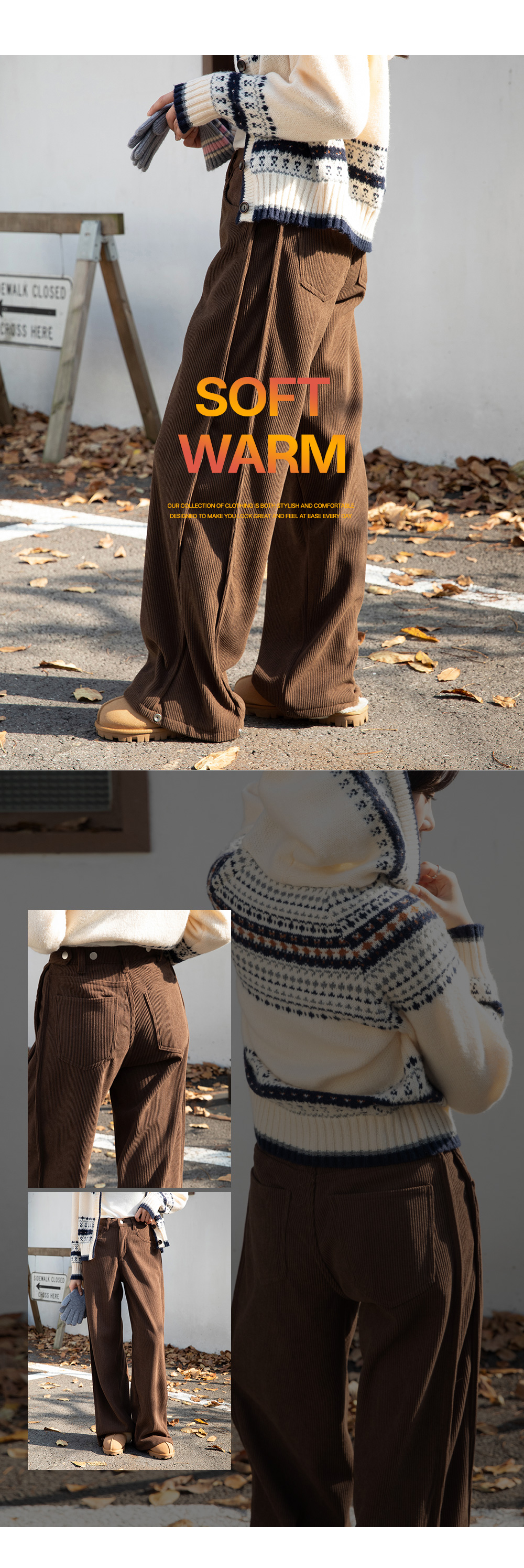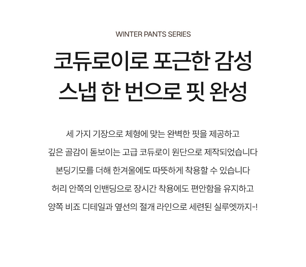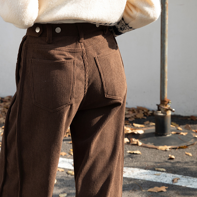 - 옆 라인의 입체적인 절개 라인이 돋보이는 코듀로이 팬츠
