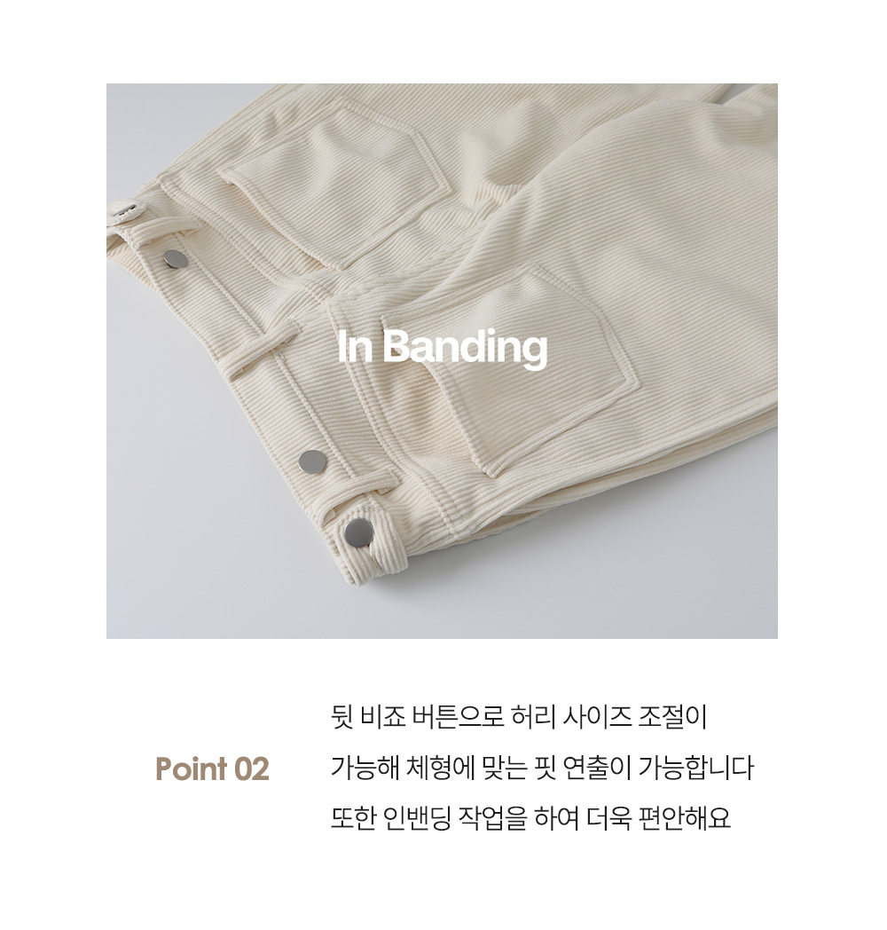 - 탄탄하면서 입체적인 골감이 느껴지는 코듀로이 원단