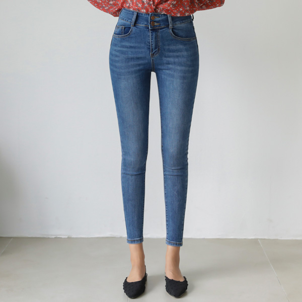 더블 버튼 와이드 밴딩 스키니진 #75864