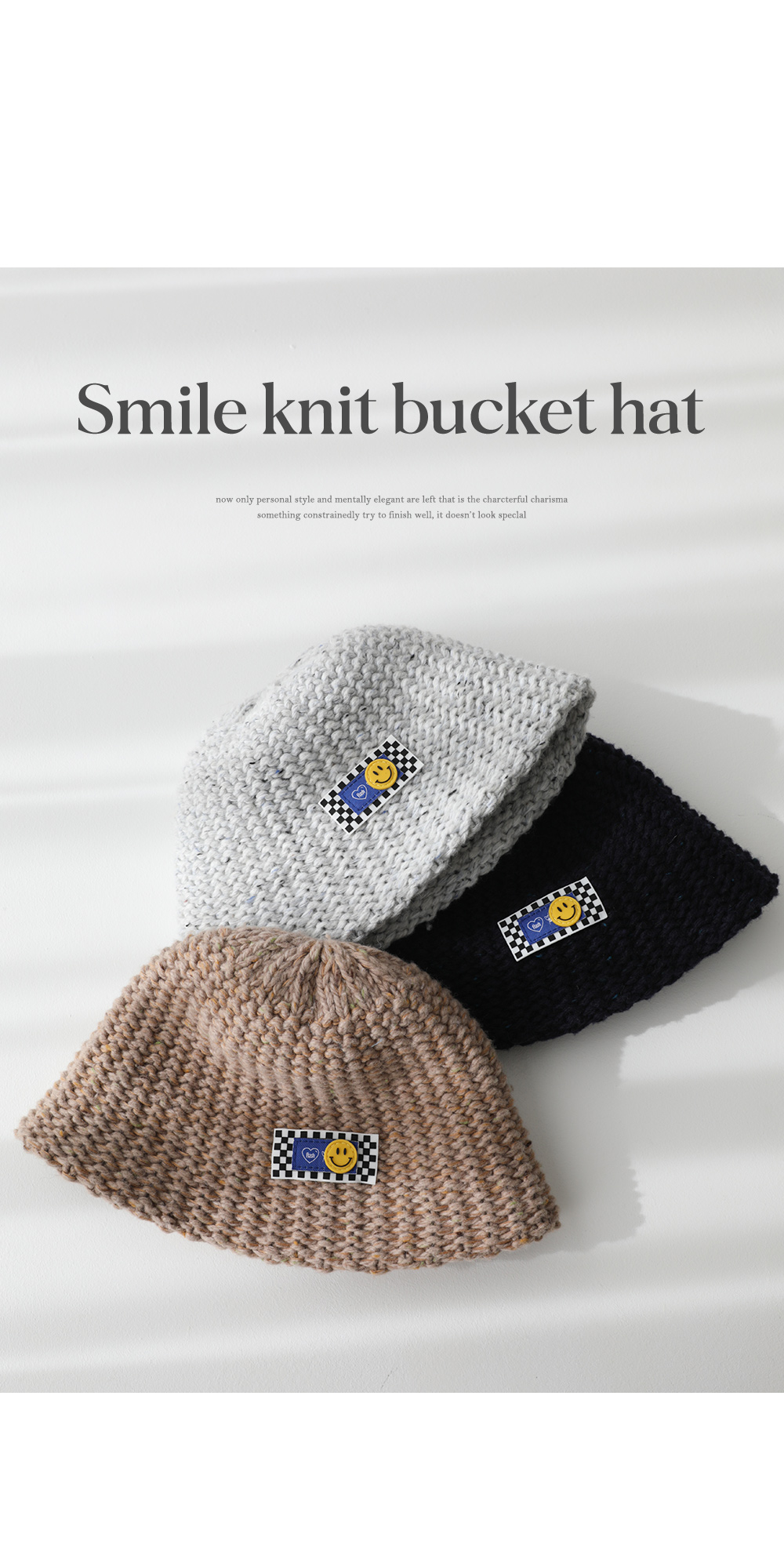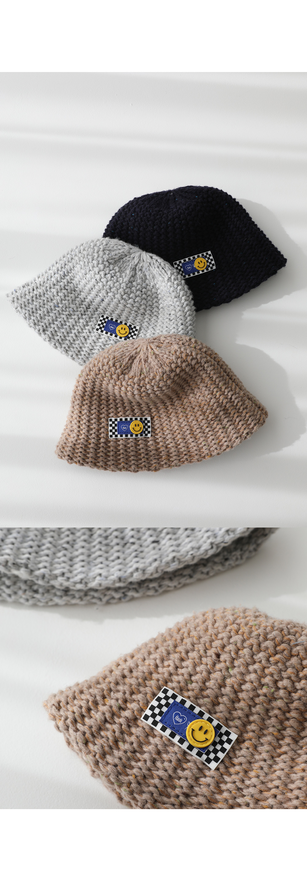 스마일 패치 울 니트 버킷햇 #87722