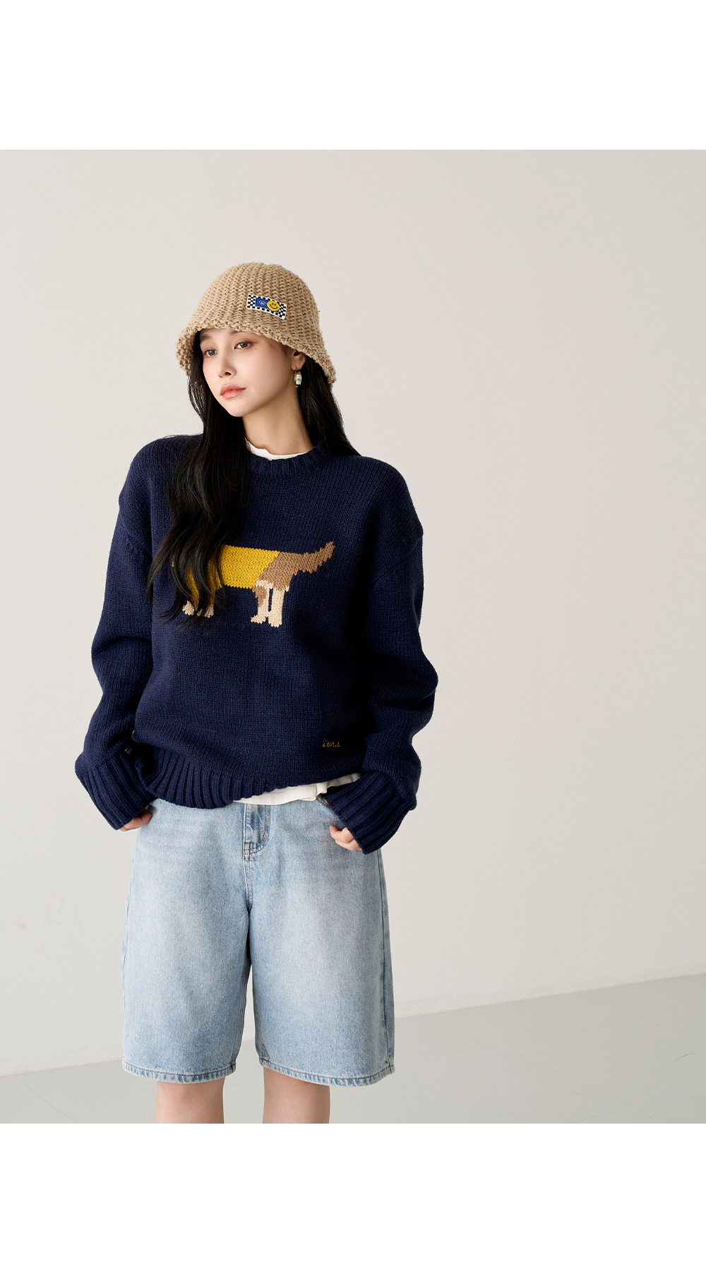 - 도톰한 짜임의 니트 텍스처가 포근하고 볼륨감 있는 실루엣을 만들어 줌