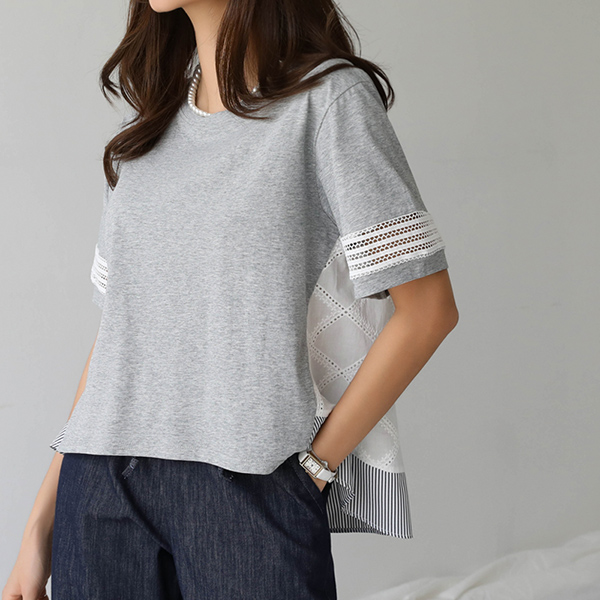 자체제작/ 레이스 배색밑단 티셔츠 #111385