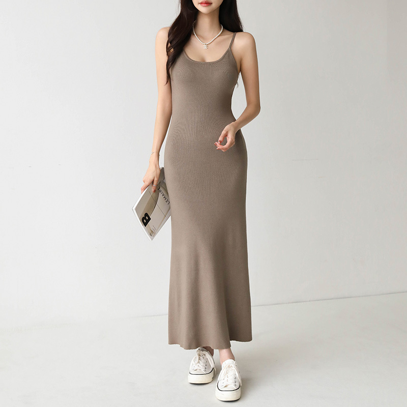 자체제작/ 슬림핏 슬리브리스 롱 원피스 #38750
