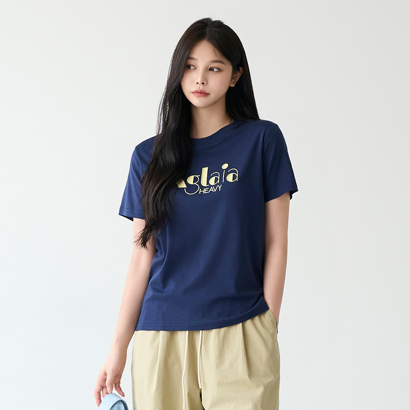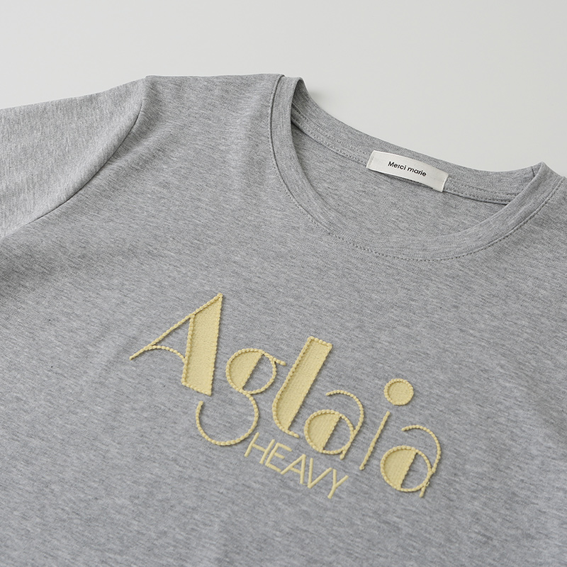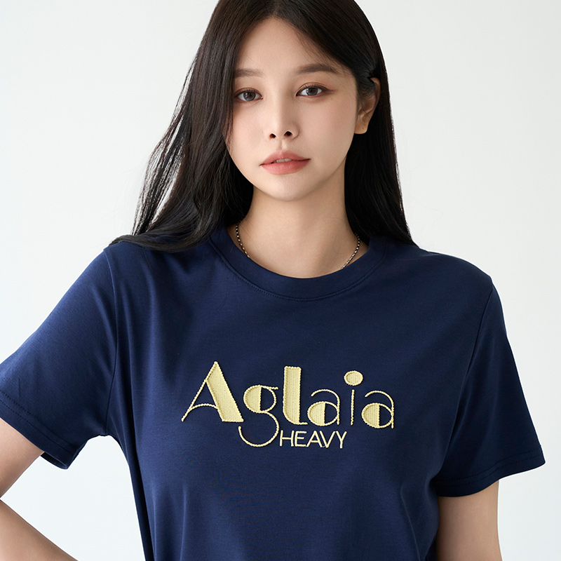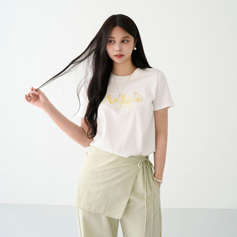 - 레터링 자수 포인트 반팔 티셔츠