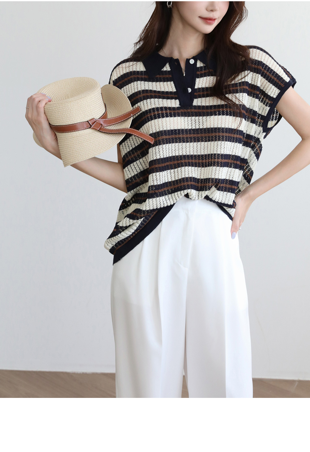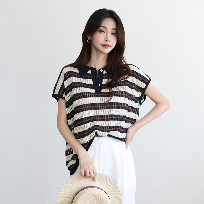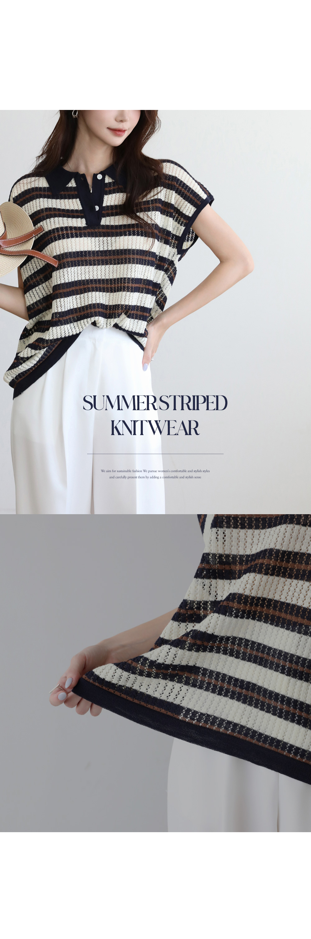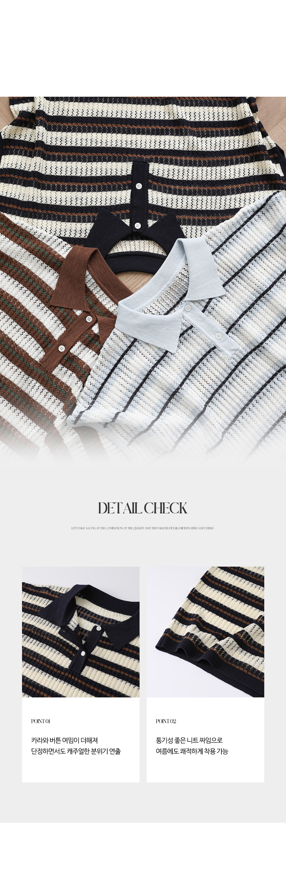 - 카라디테일로 클래식함이 전해지는 스트라이프 니트