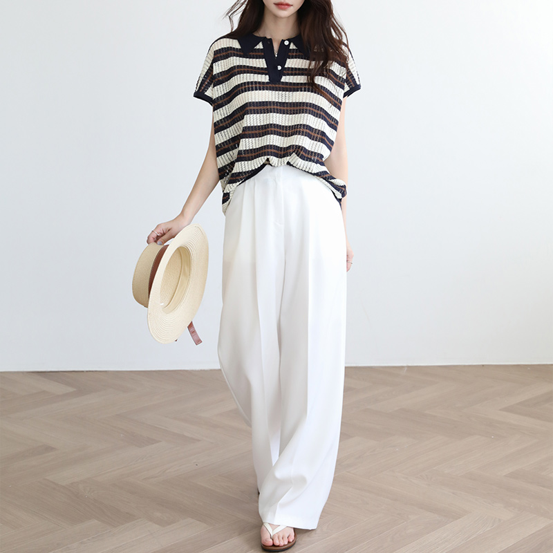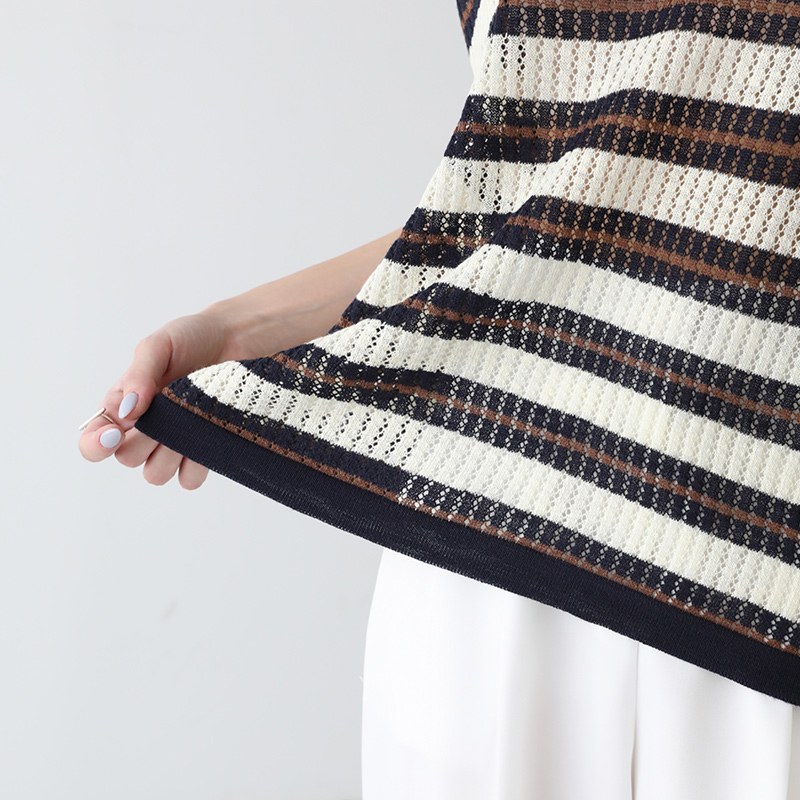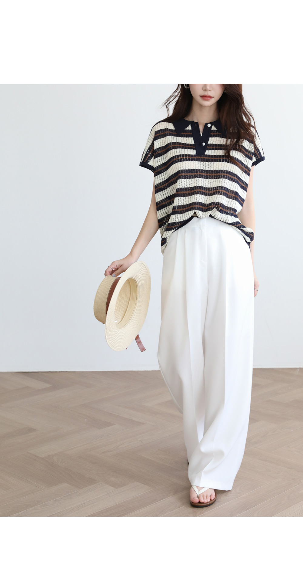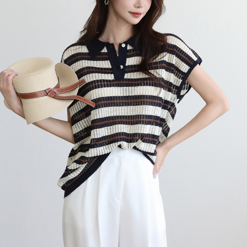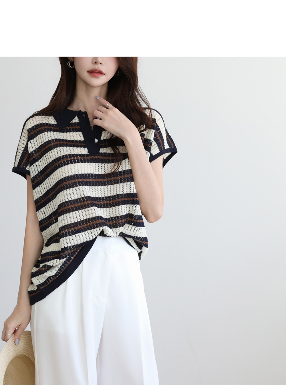 - 카라디테일로 클래식함이 전해지는 스트라이프 니트