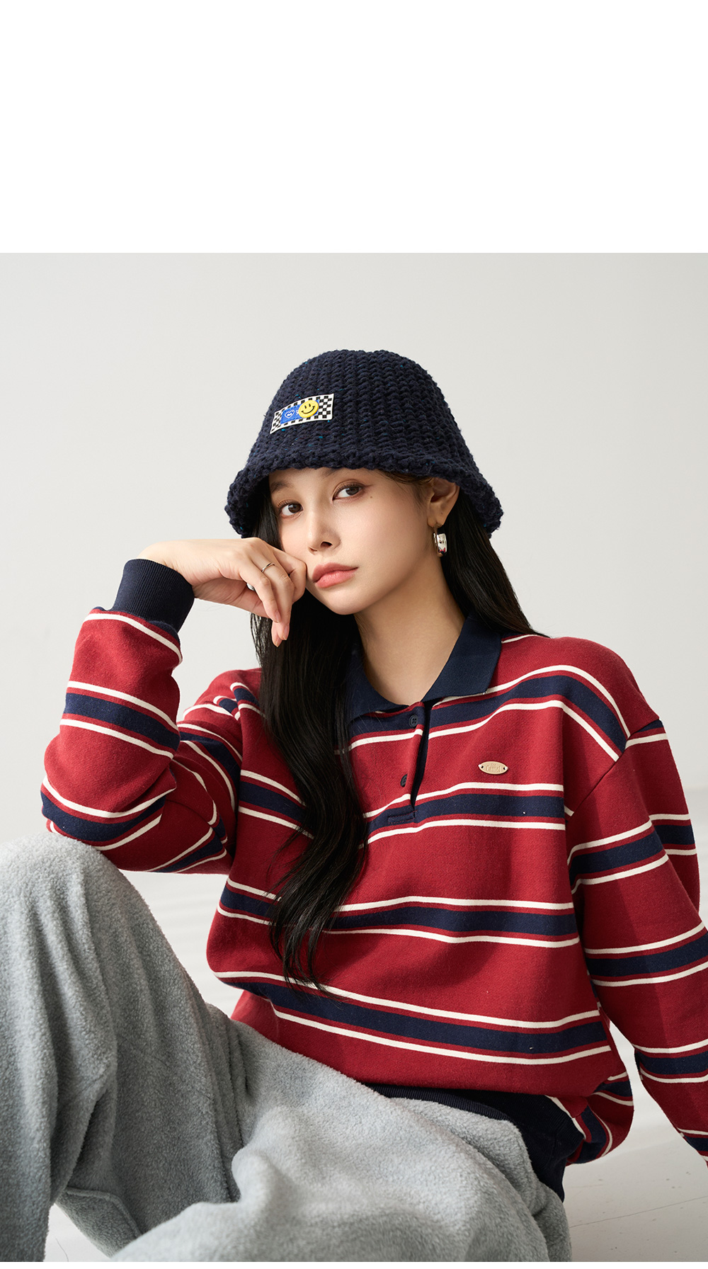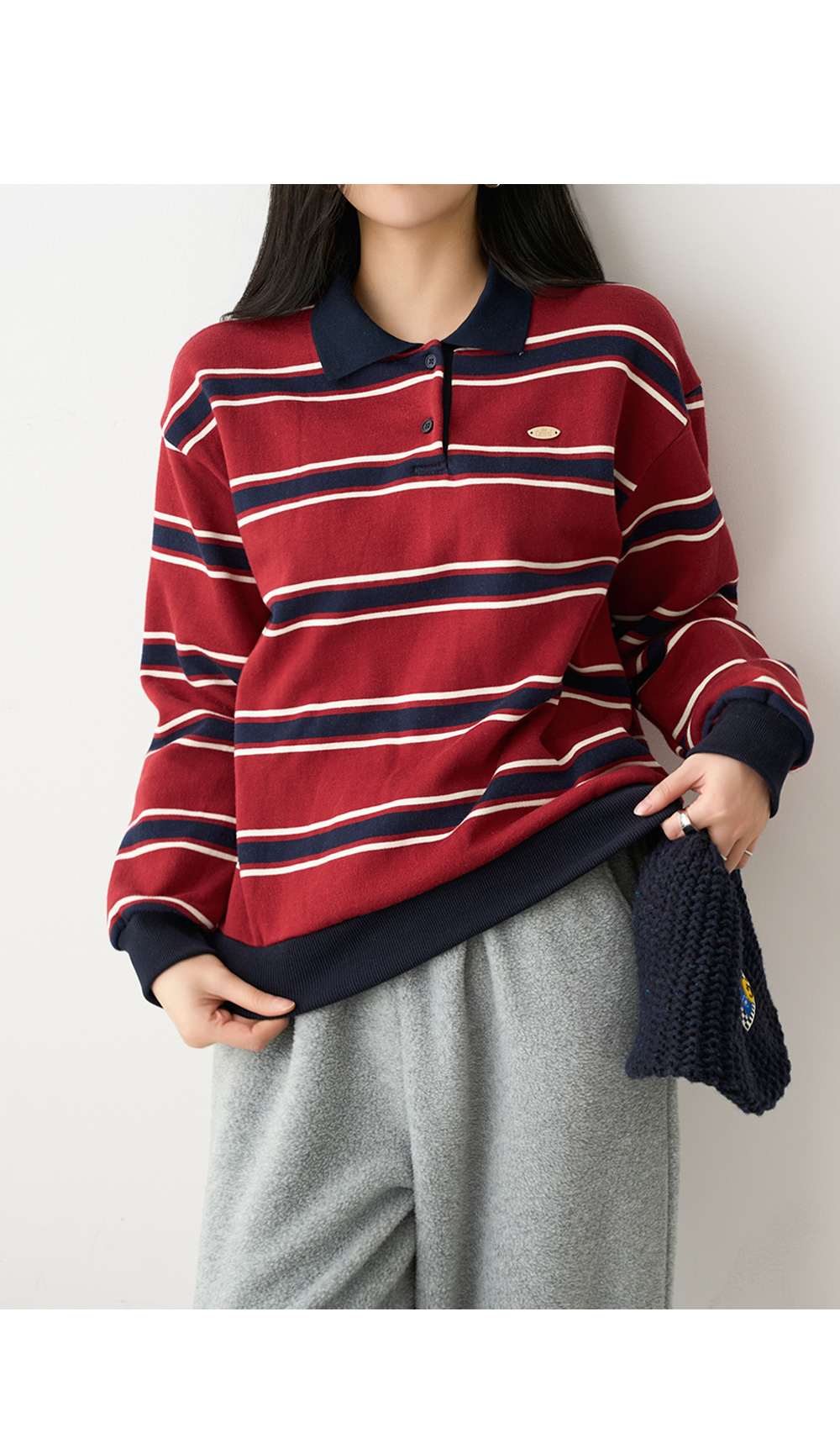 237655 (+기모 추가!)팬던트 스트라이프 카라 맨투맨 #112492, #112628 49900