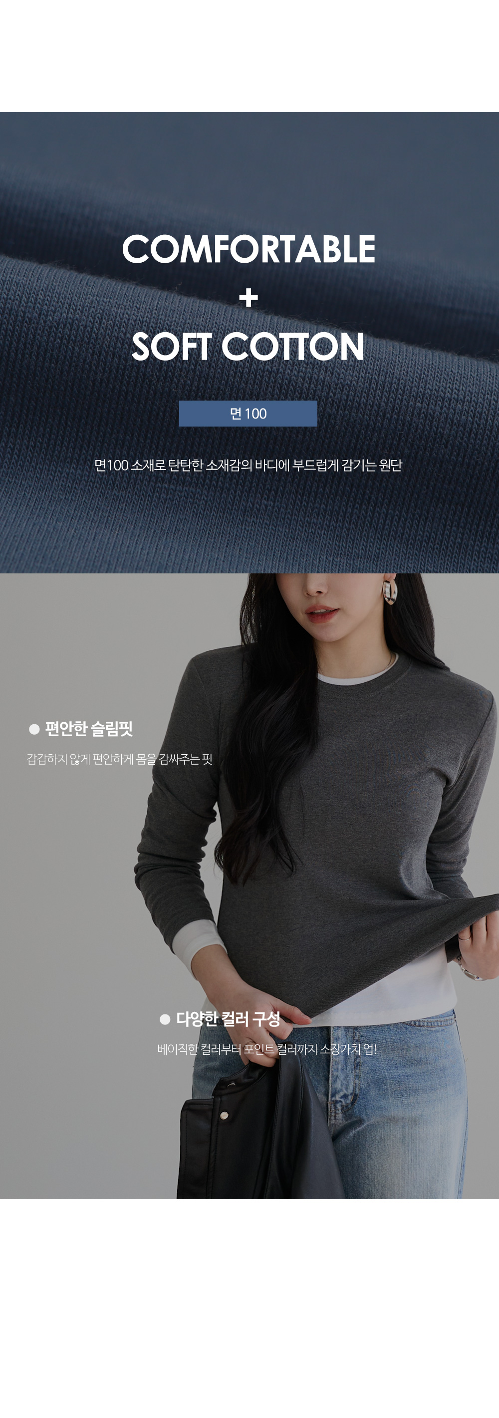 - 부드러운 소재의 긴팔 티셔츠