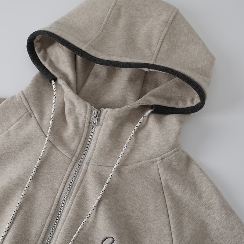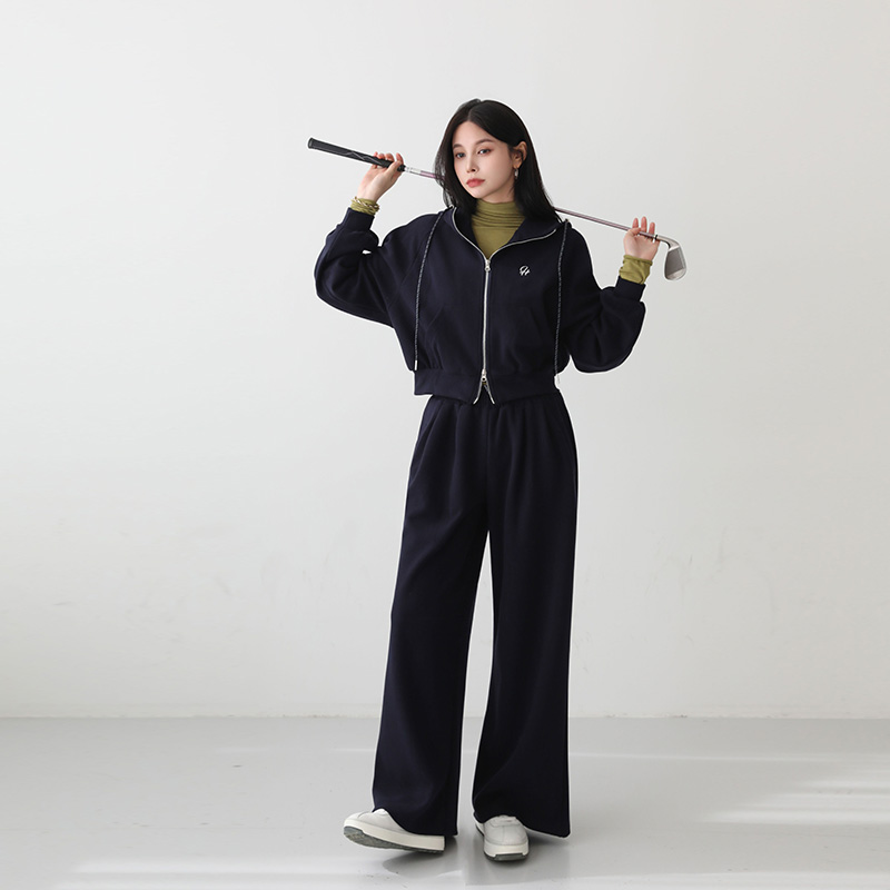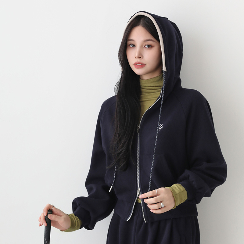 - 상의는 여유 있는 루즈핏으로 체형 커버에 좋으며, 전면 지퍼 여밈으로 간편하게 착용 가능