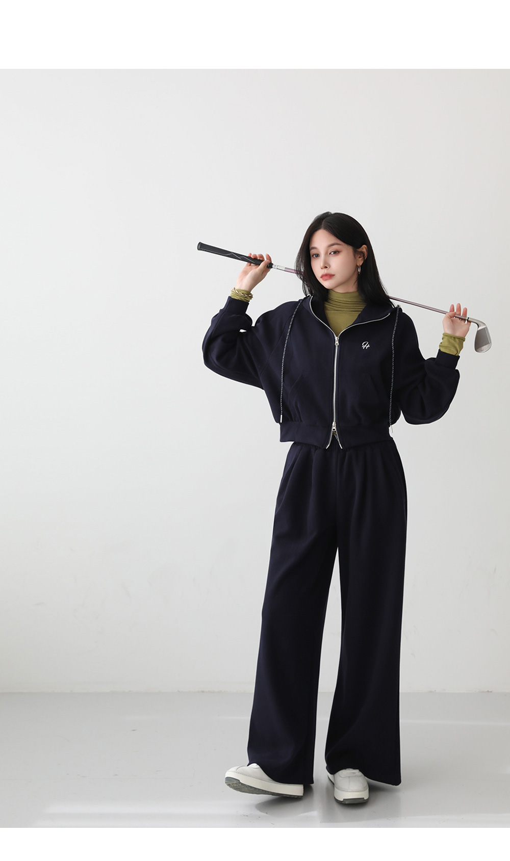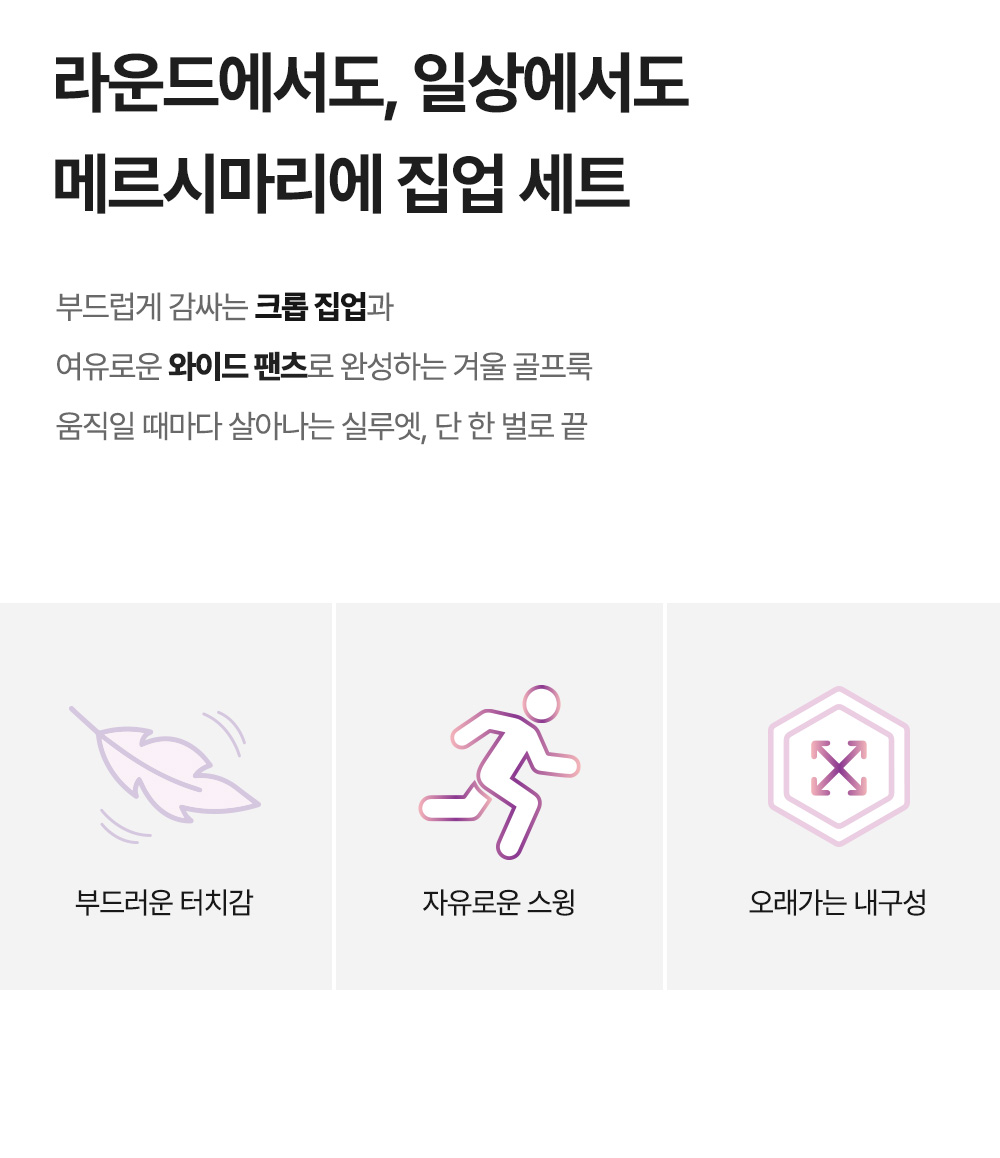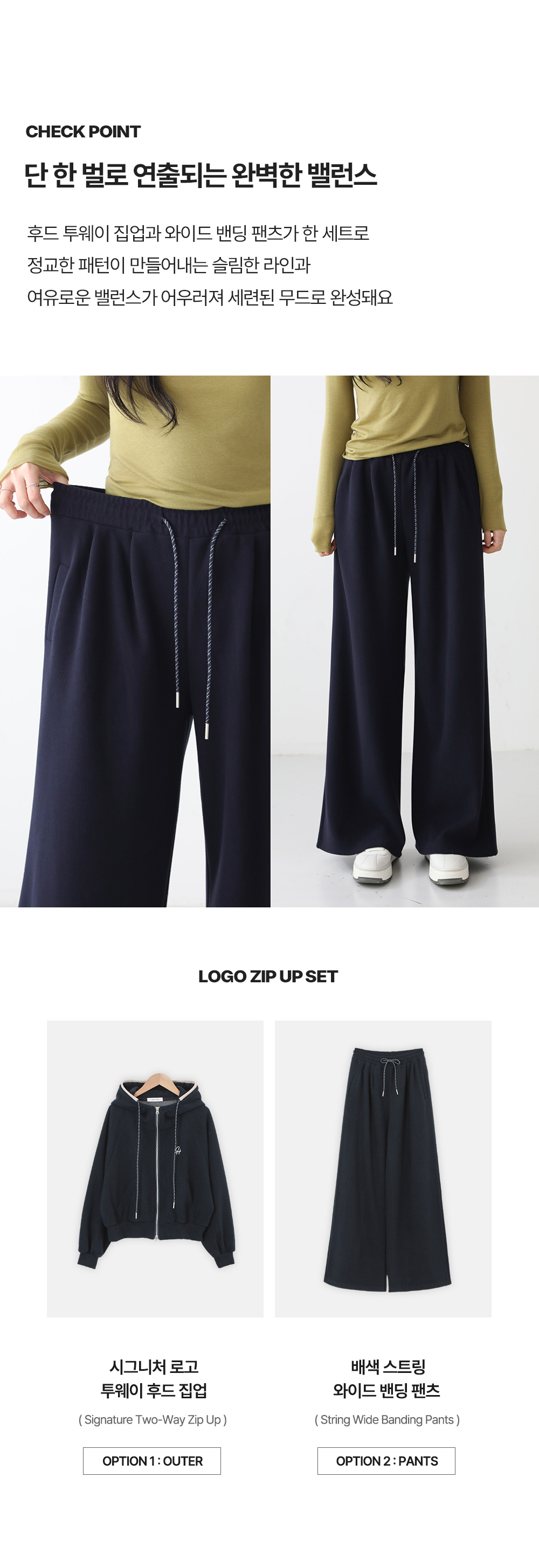 - 하의는 허리 밴딩과 스트링으로 편안한 착용감이 특징이며, 트렌디한 실루엣을 완성