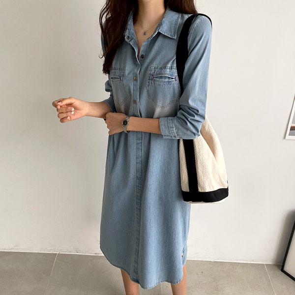 이지하면서 차분한 핏으로 입어지는 데님원피스