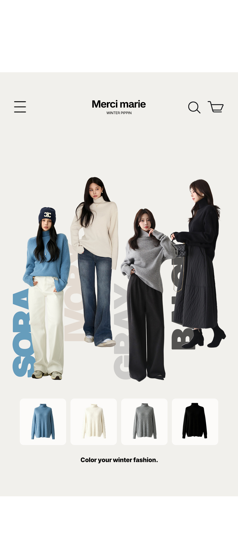 - 톡톡한 니트소재에 터들넥으로 디자인되어 따뜻한 착용감