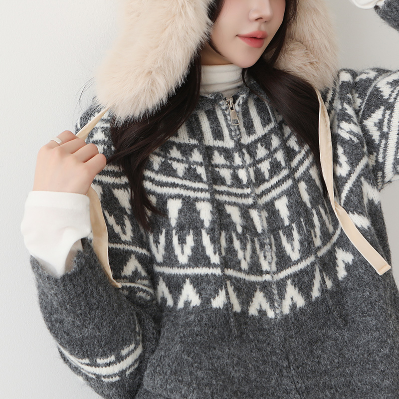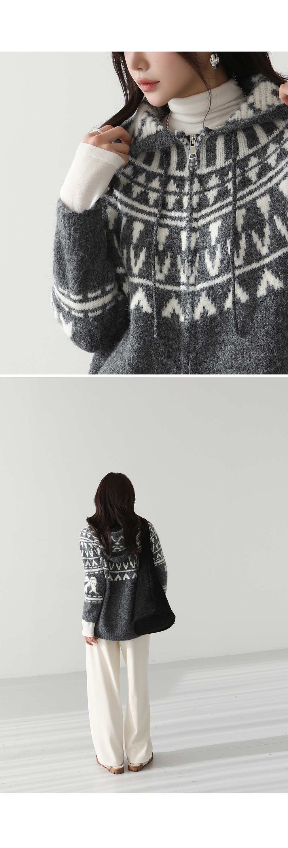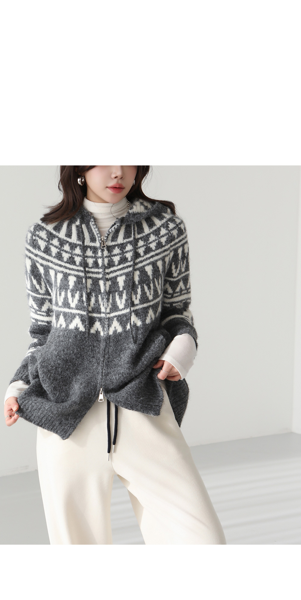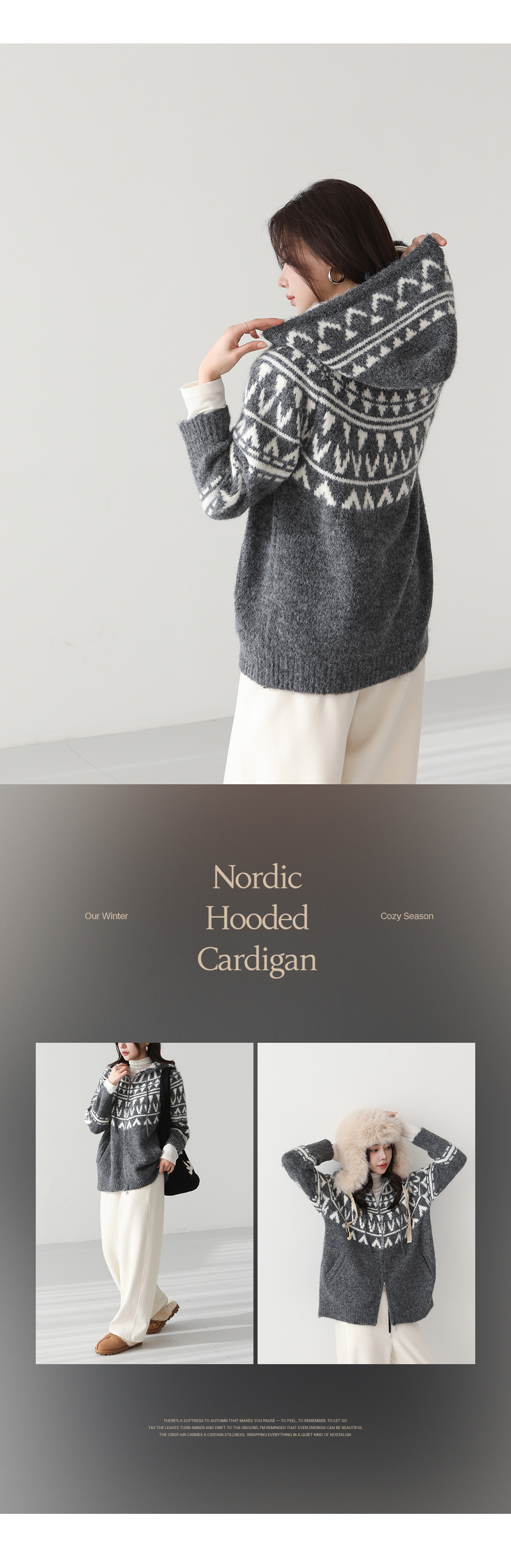 - 포근한 니트 질감의 노르딕 패턴 후드가디건