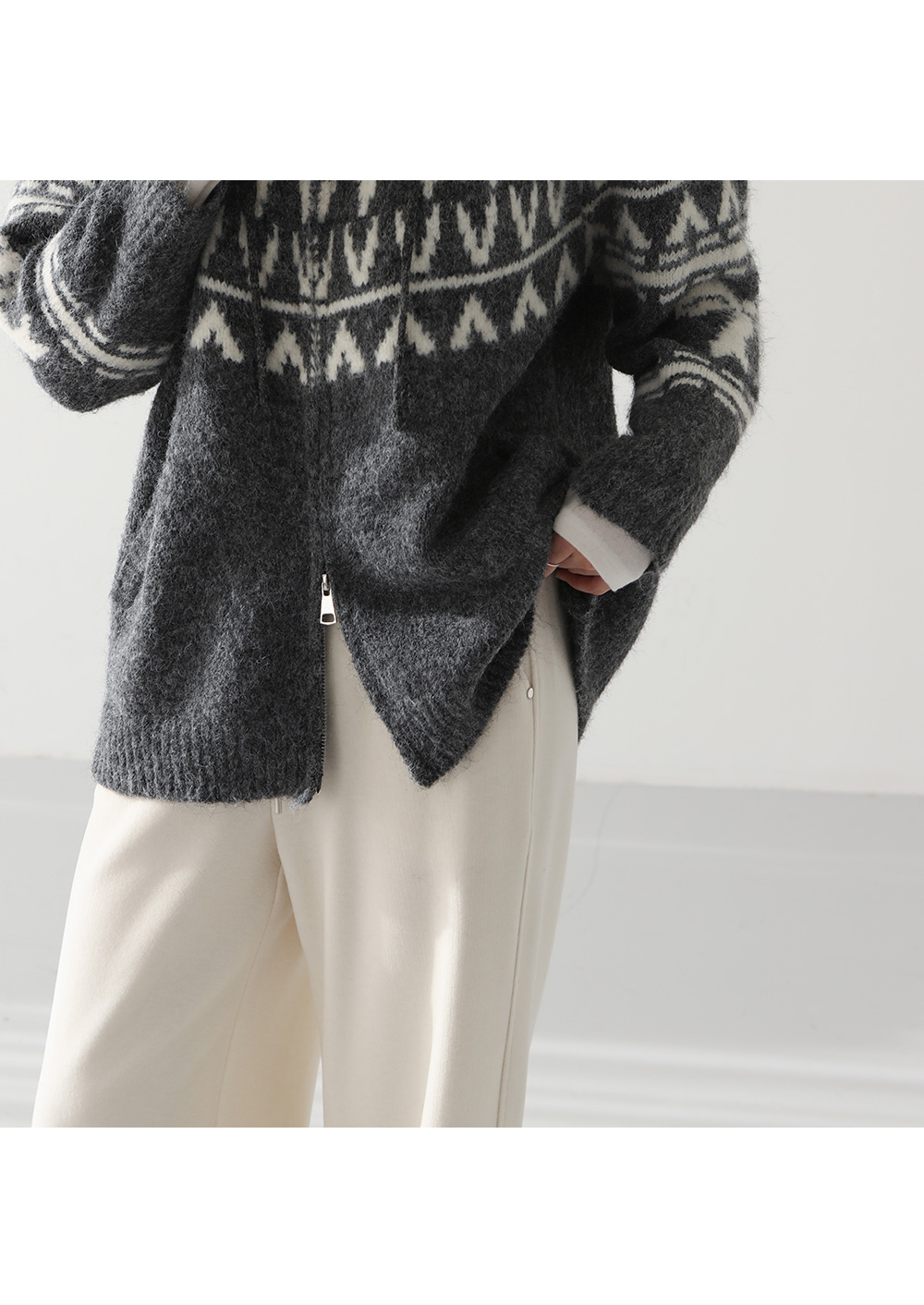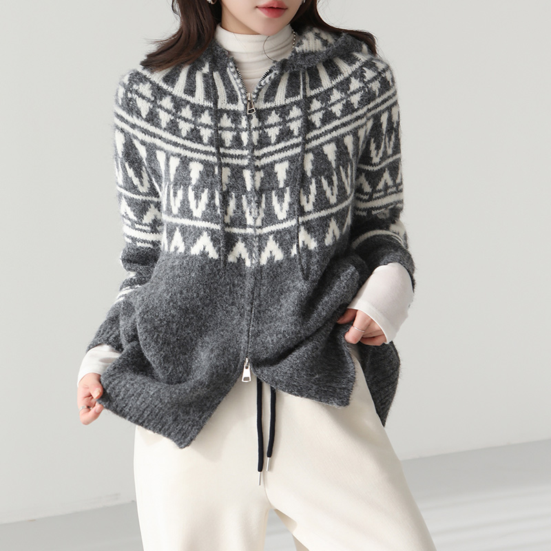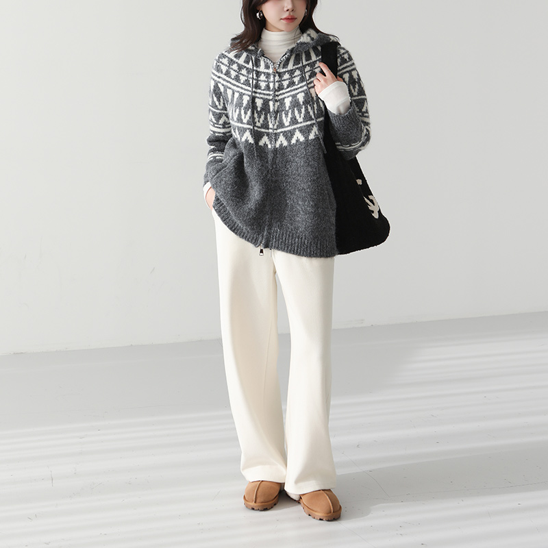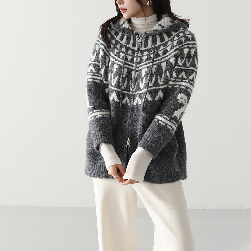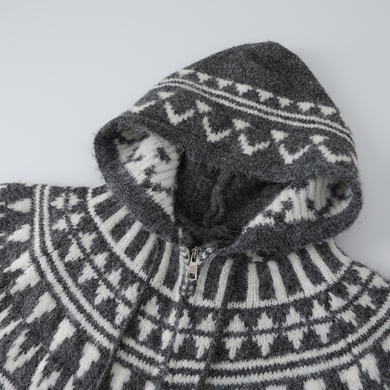 - 포근한 니트 질감의 노르딕 패턴 후드가디건