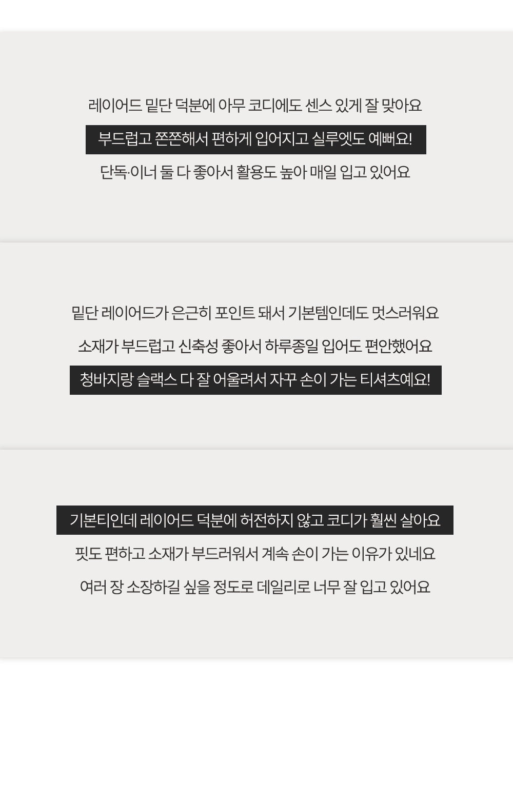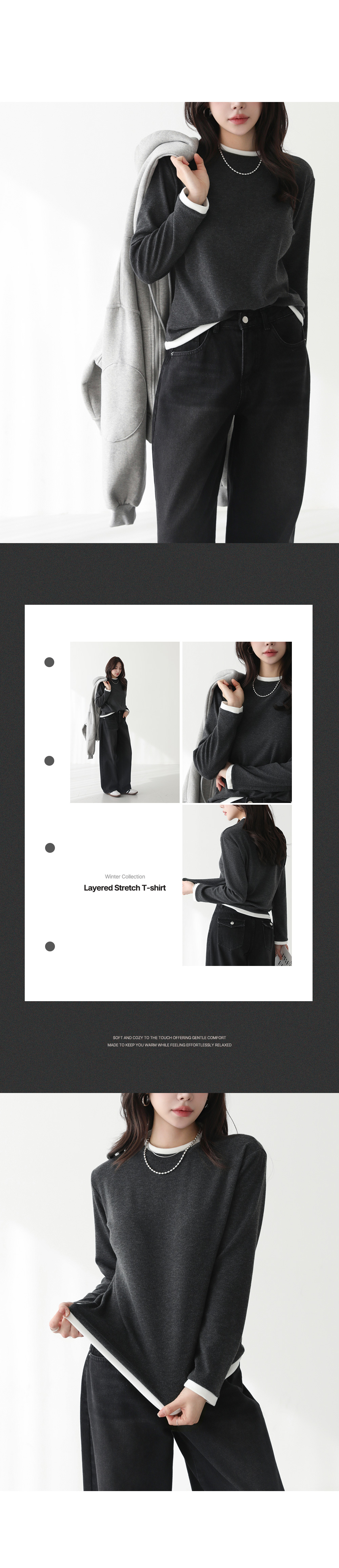 - 넥라인, 소매, 밑단 레이어드 디테일로 밋밋함없이 포인트