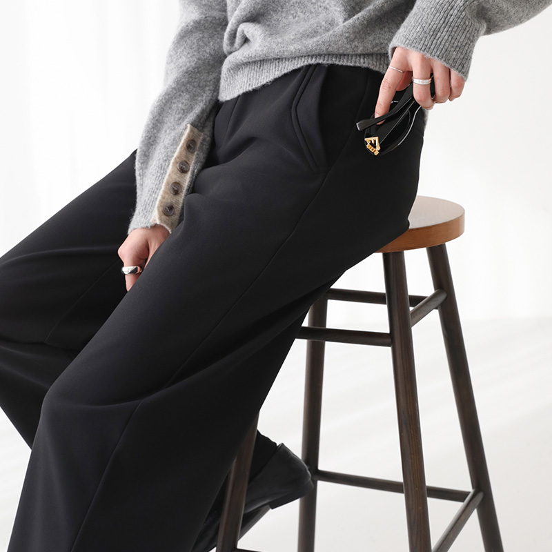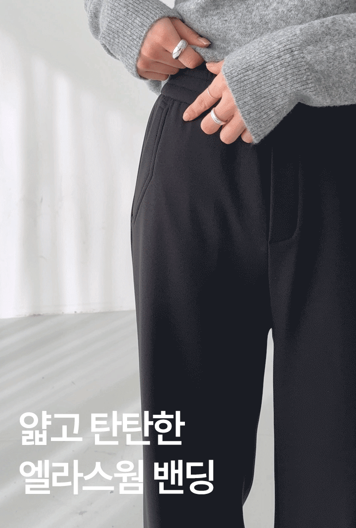 - 짱짱한 탄력과 블랙팬츠이지만 먼지가 잘 달라 붙지 않아 여기저기 입기 좋은 데일리 팬츠