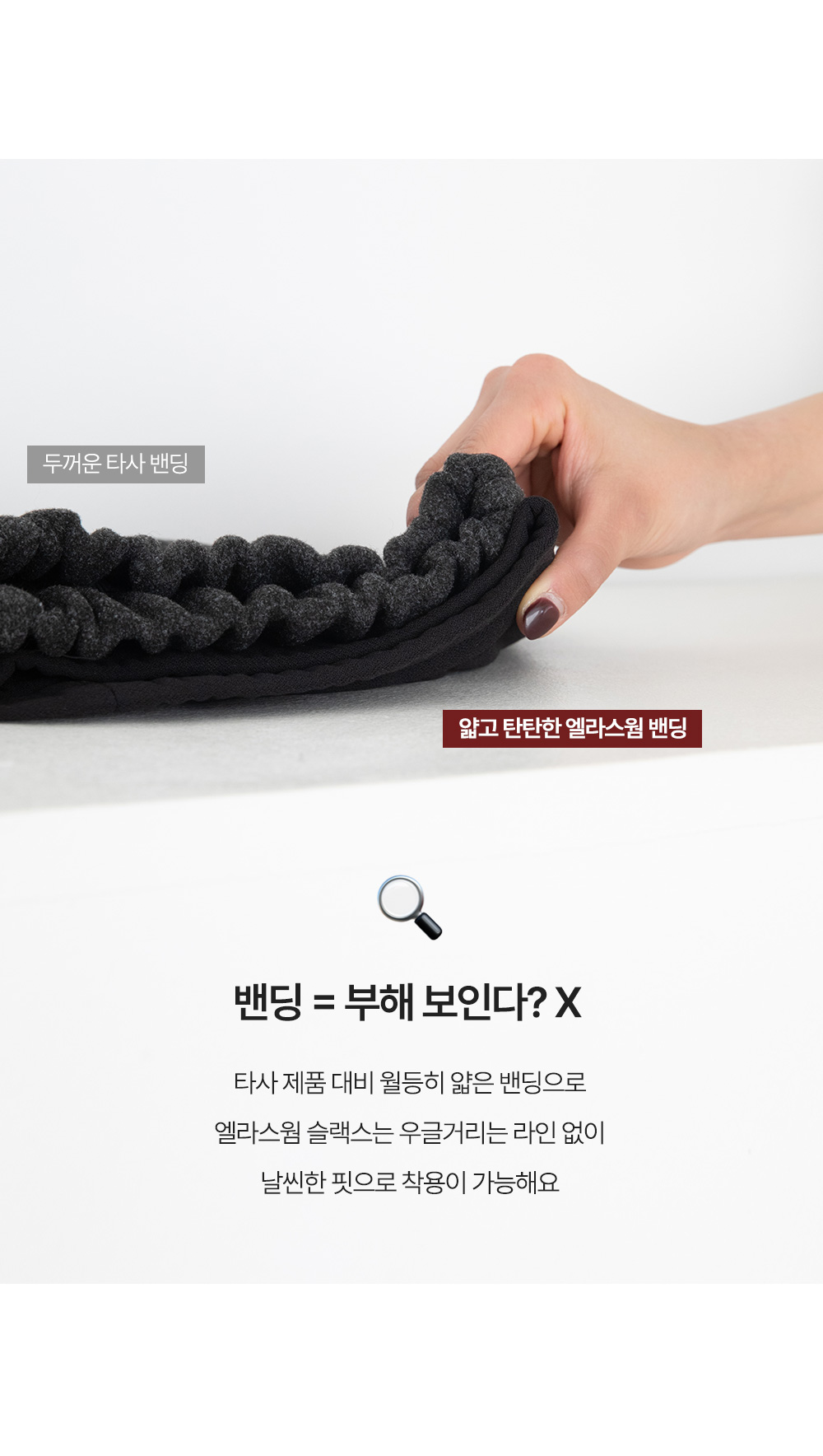 - 넓은 와이드 밴딩이 미운 뱃살을 가려주고 배 조임 없이 편안한 착용감