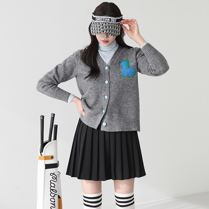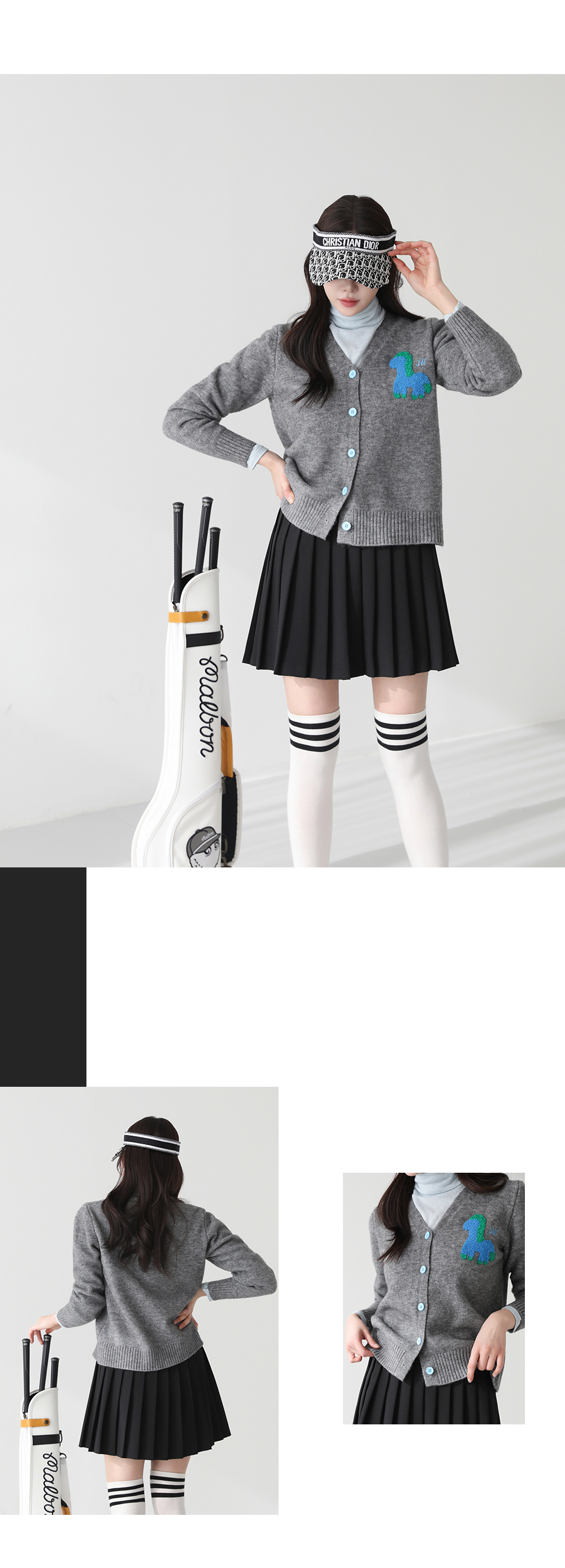 - 단추와 프린트 배색으로 룩에 포인트가 됨