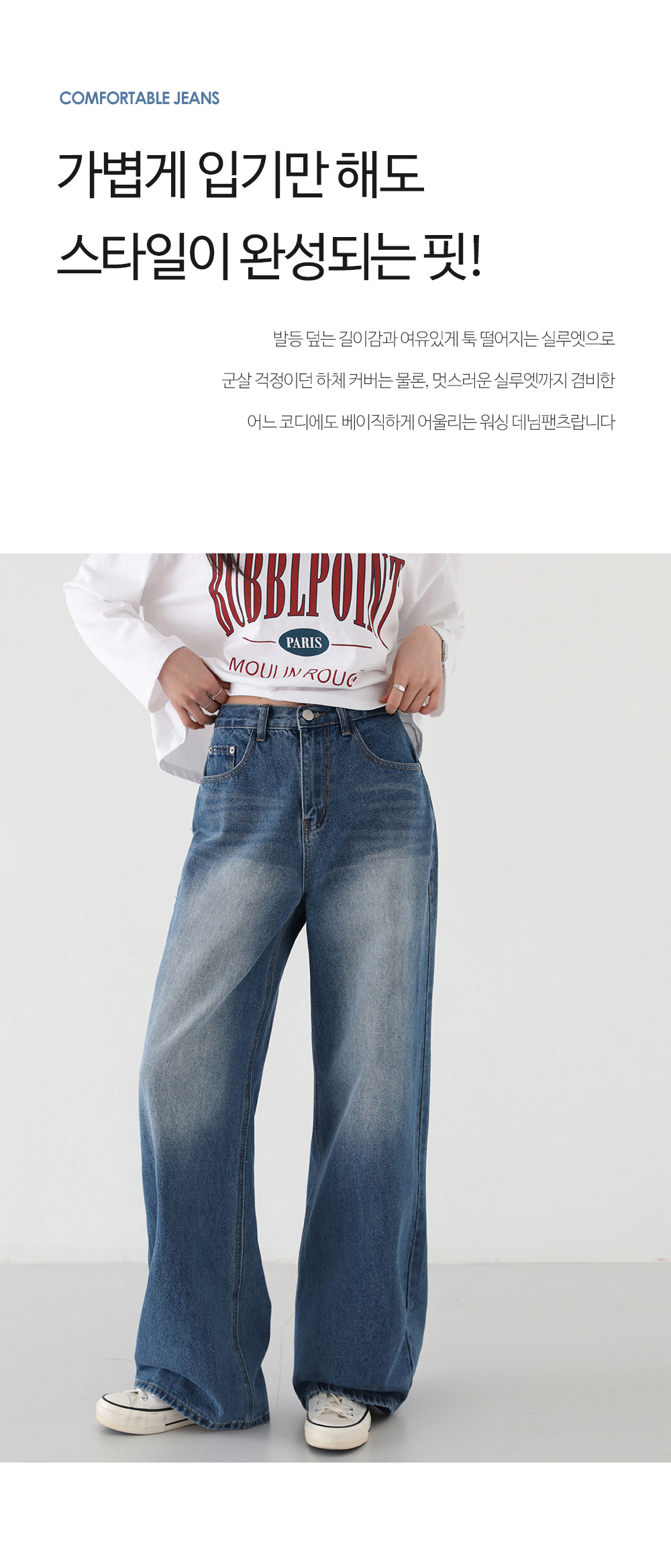 - 어느 코디에도 베이직하게 어울리는 워싱 데님팬츠