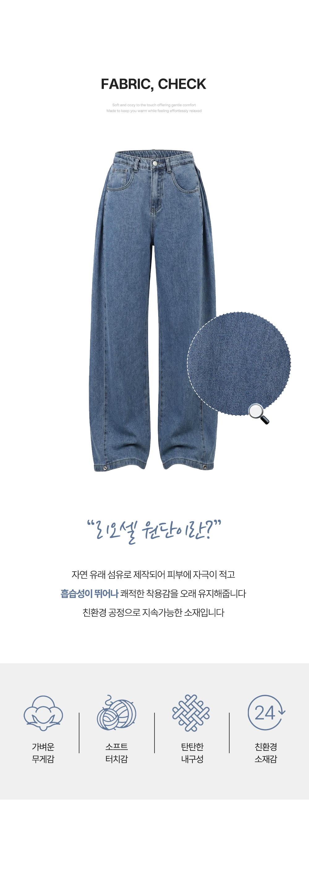 - 리오셀이 함유되어 있어 우수한 흡습성과 통기성이 돋보이는 프리미엄 원단