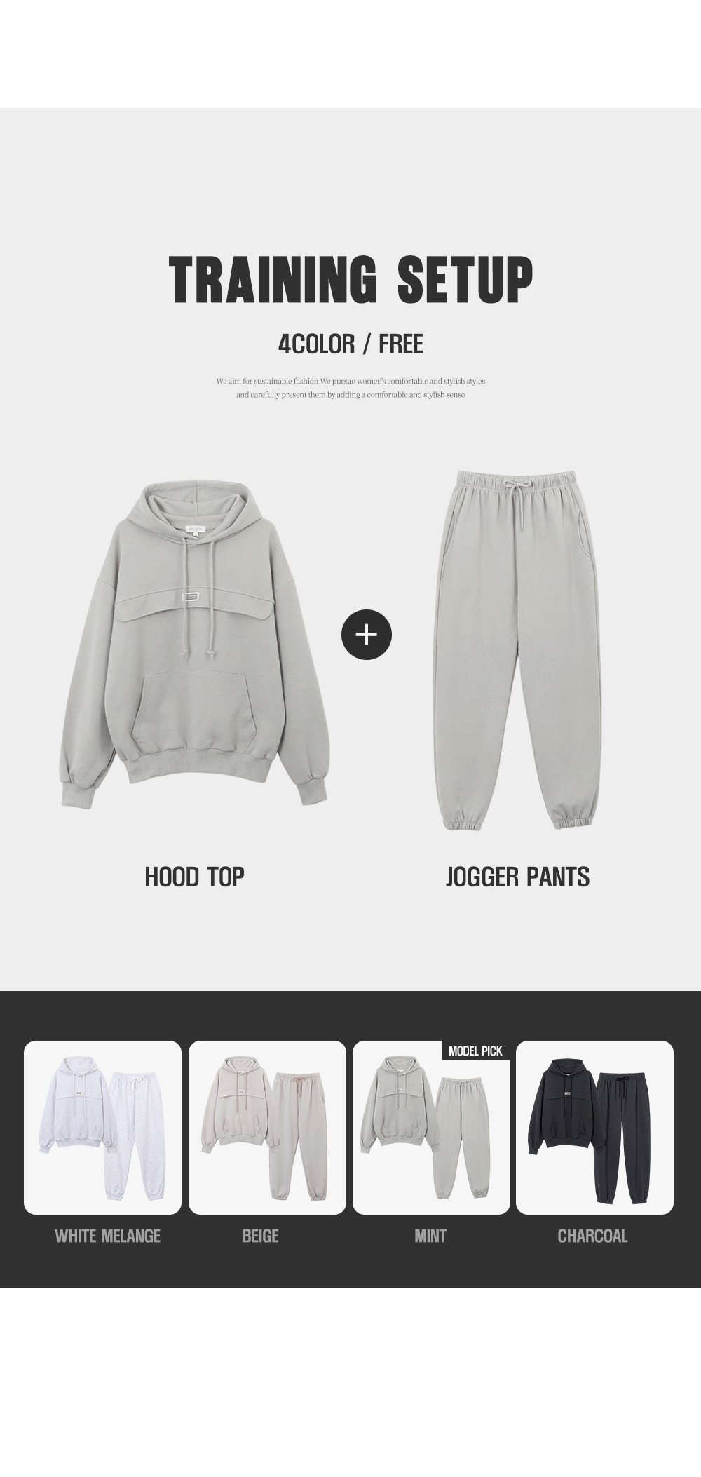 - 팬츠는 허리 밴딩 + 스트링으로 체형에 구애 없이 착용 가능