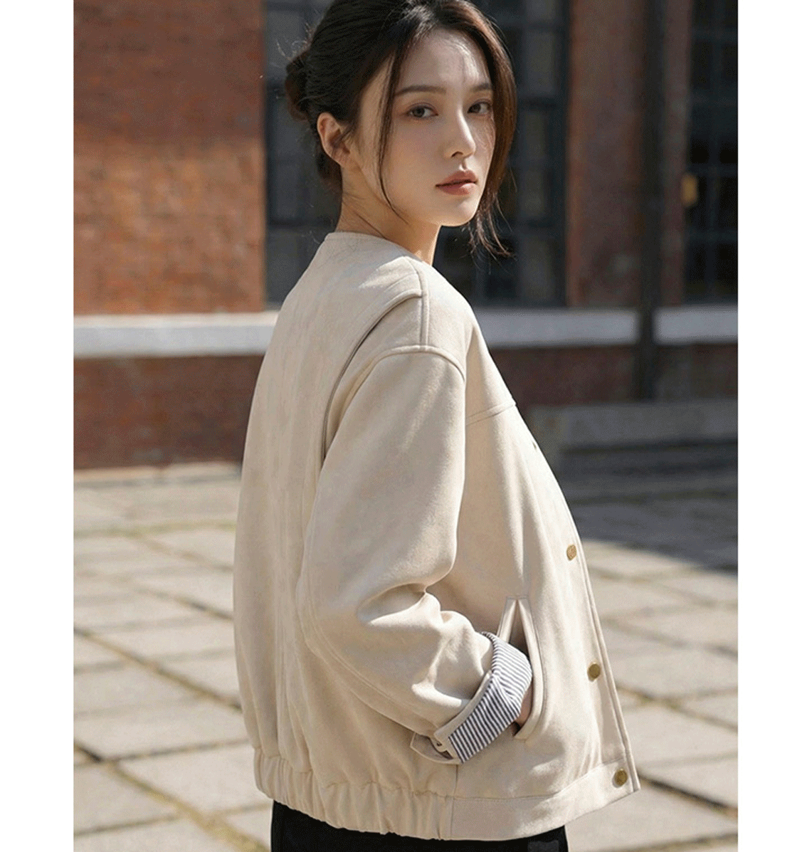 노카라 절개 스웨이드 점퍼 #66761