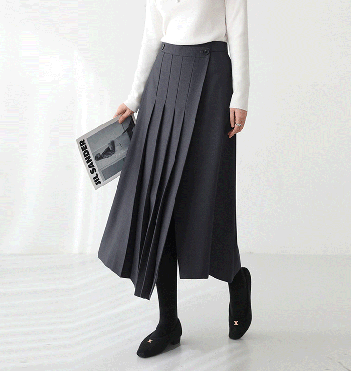 [메르시마리에] 모던 플리츠 언발 랩 스커트 #53478
