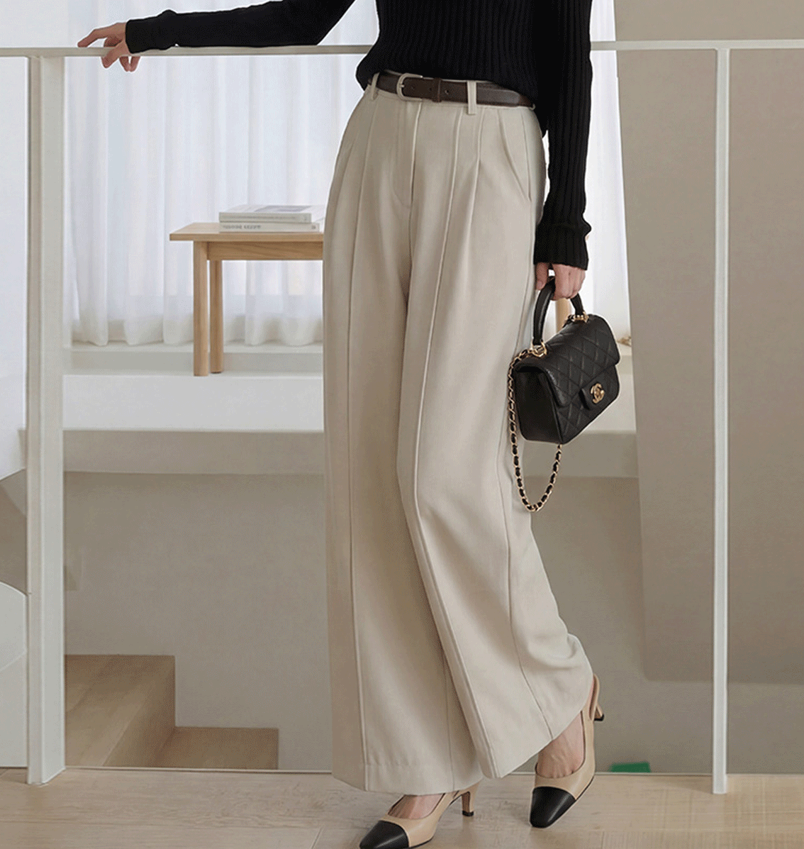 일자로 떨어지는 핏이 다리를 더 길어 보이게!