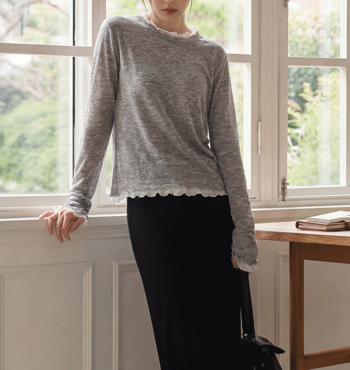 가볍고 유연한 소재와 배색 프릴 디테일,