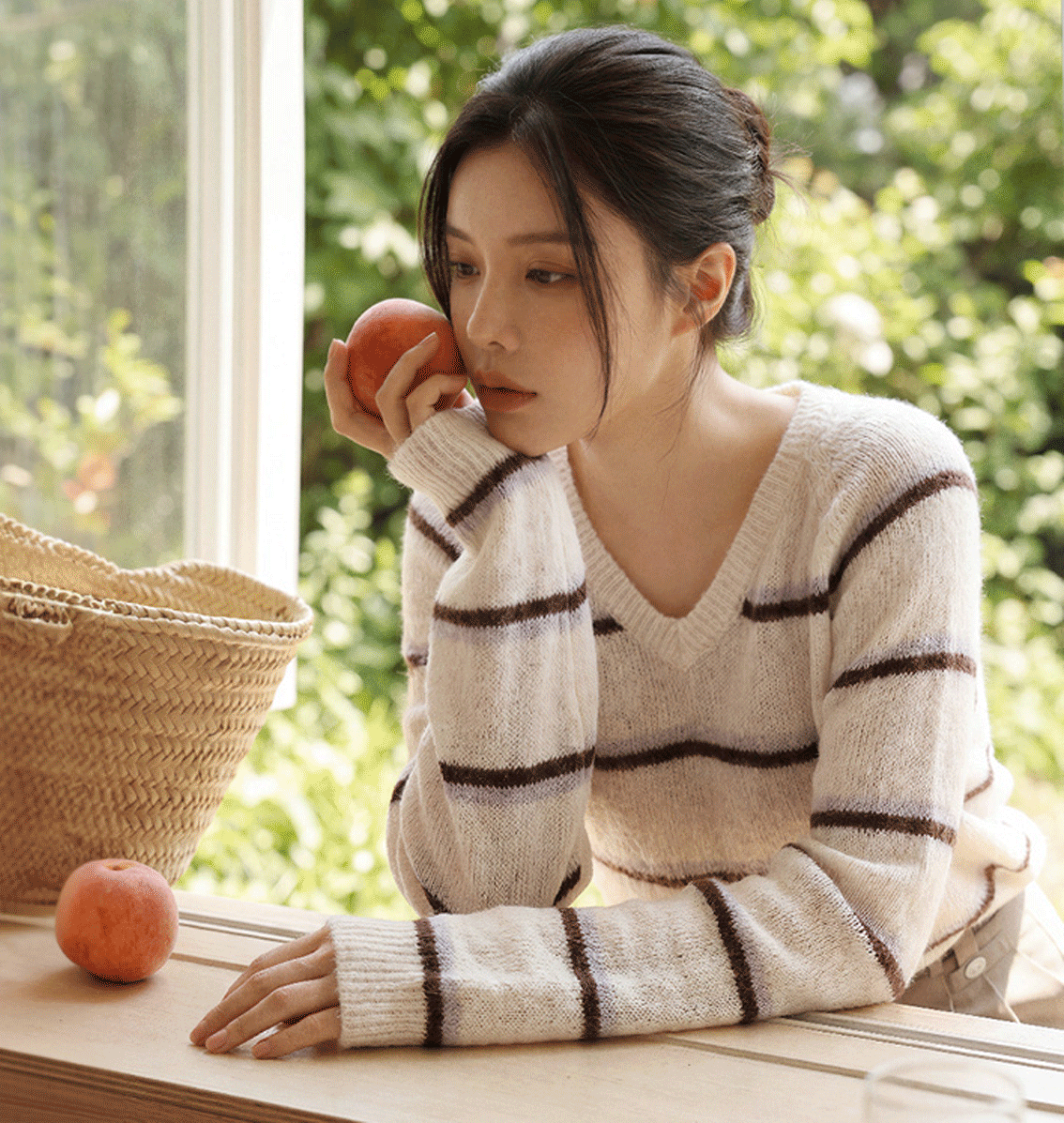 브이넥 스트라이프 라이트 니트 #112943