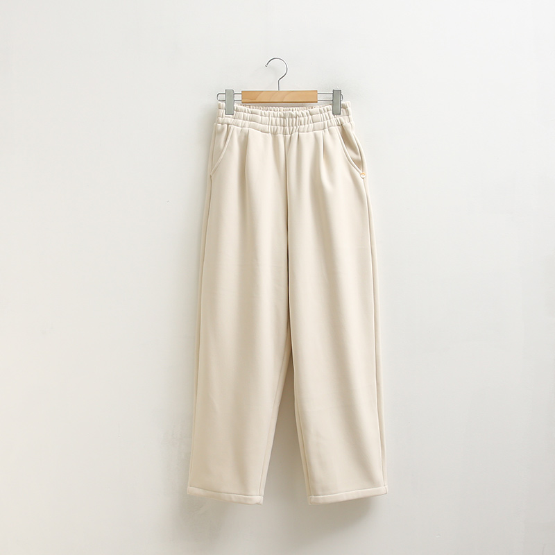 [WOW 팬츠] 핀턱 버튼 세미 배기핏 밴딩 팬츠 #710566
