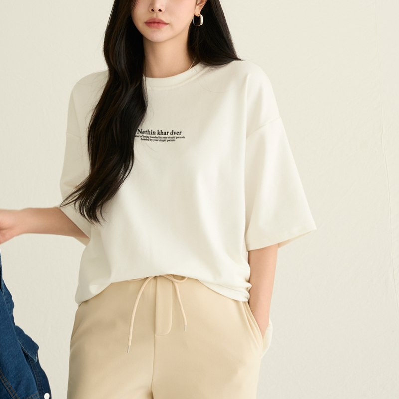 그래서 라운드넥과 레터링 프린트를 더해 심플하면서도 개성을 살렸답니다