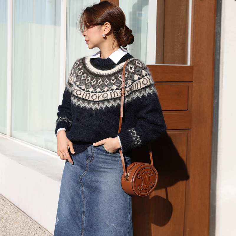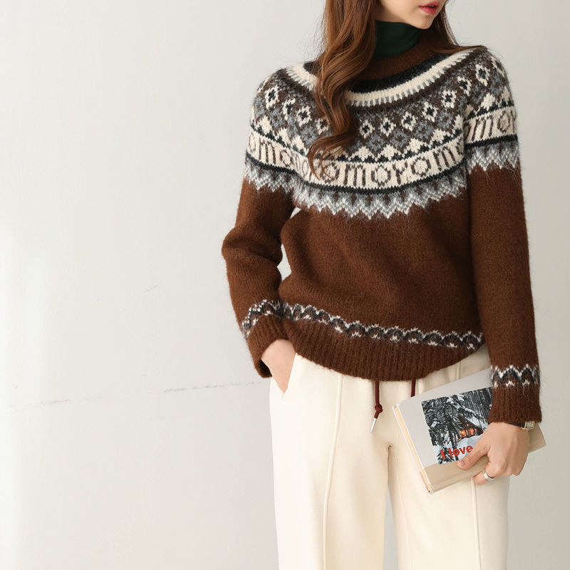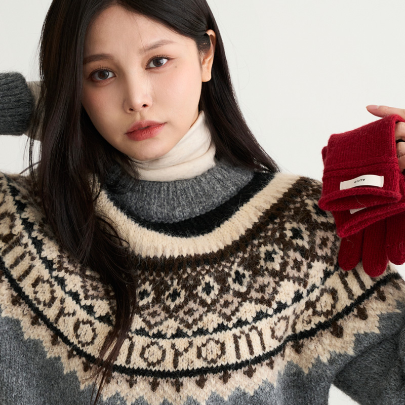 빈티지한 배색 노르딕 패턴으로 특별한 코디없이