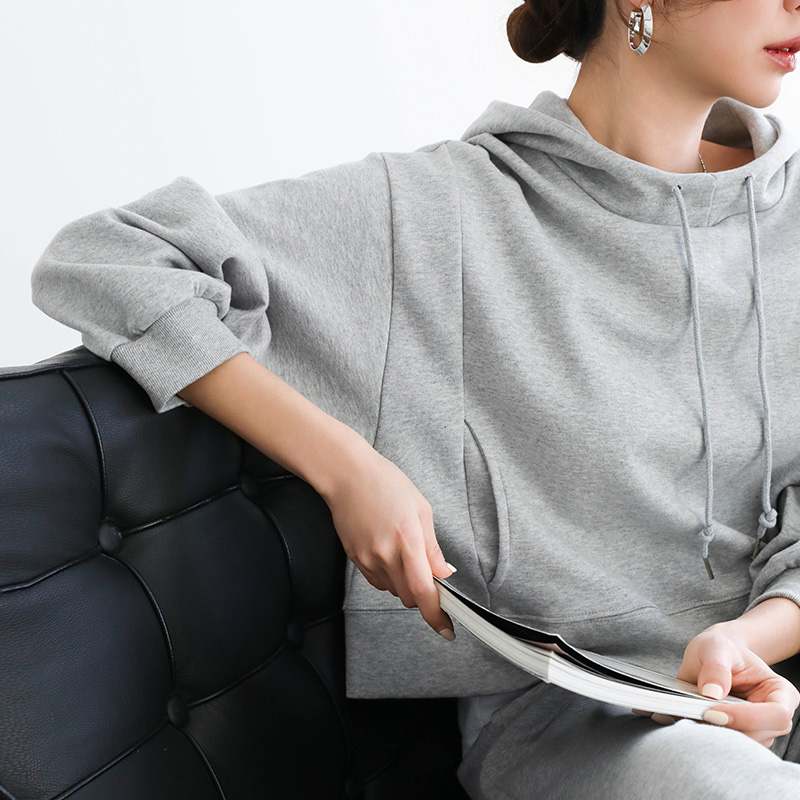 - 하이넥 후드와 상의 절개 디테일