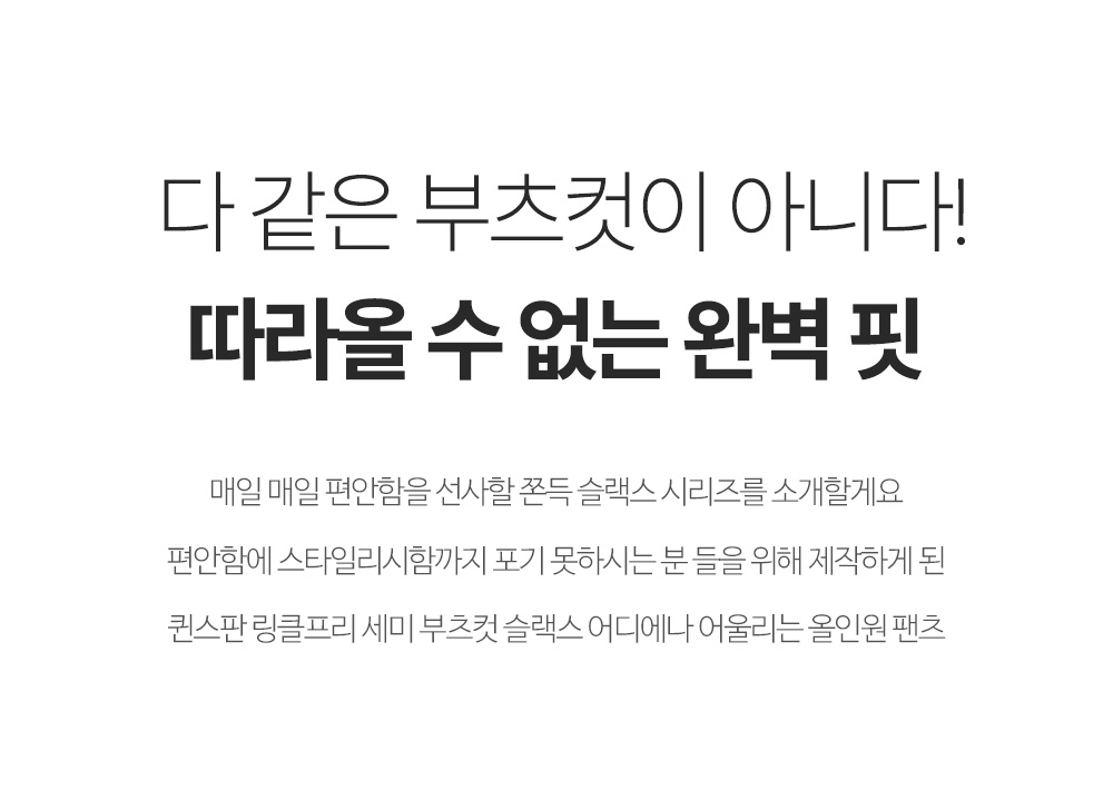 - 날씬한 볼륨업 핏을 선사하는 세미 부츠컷 라인
