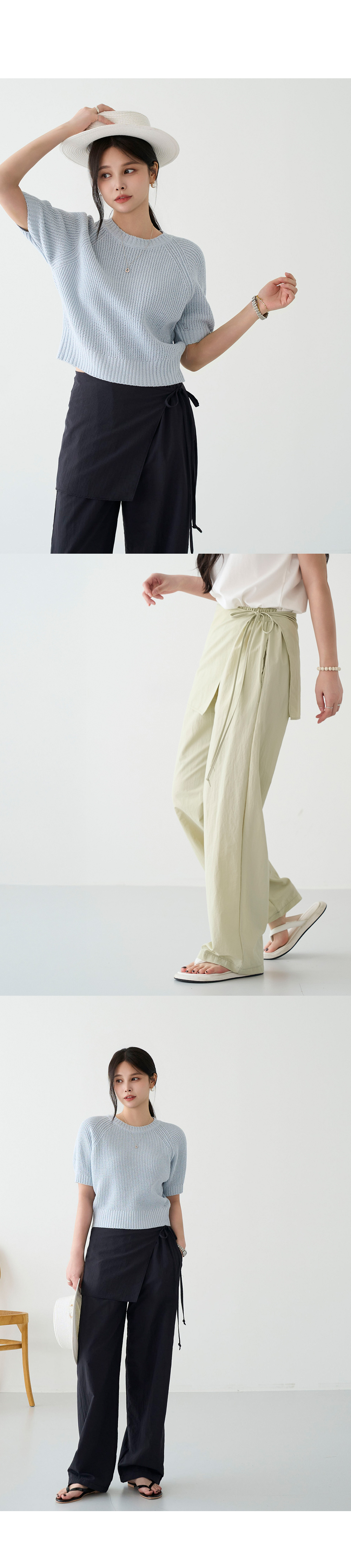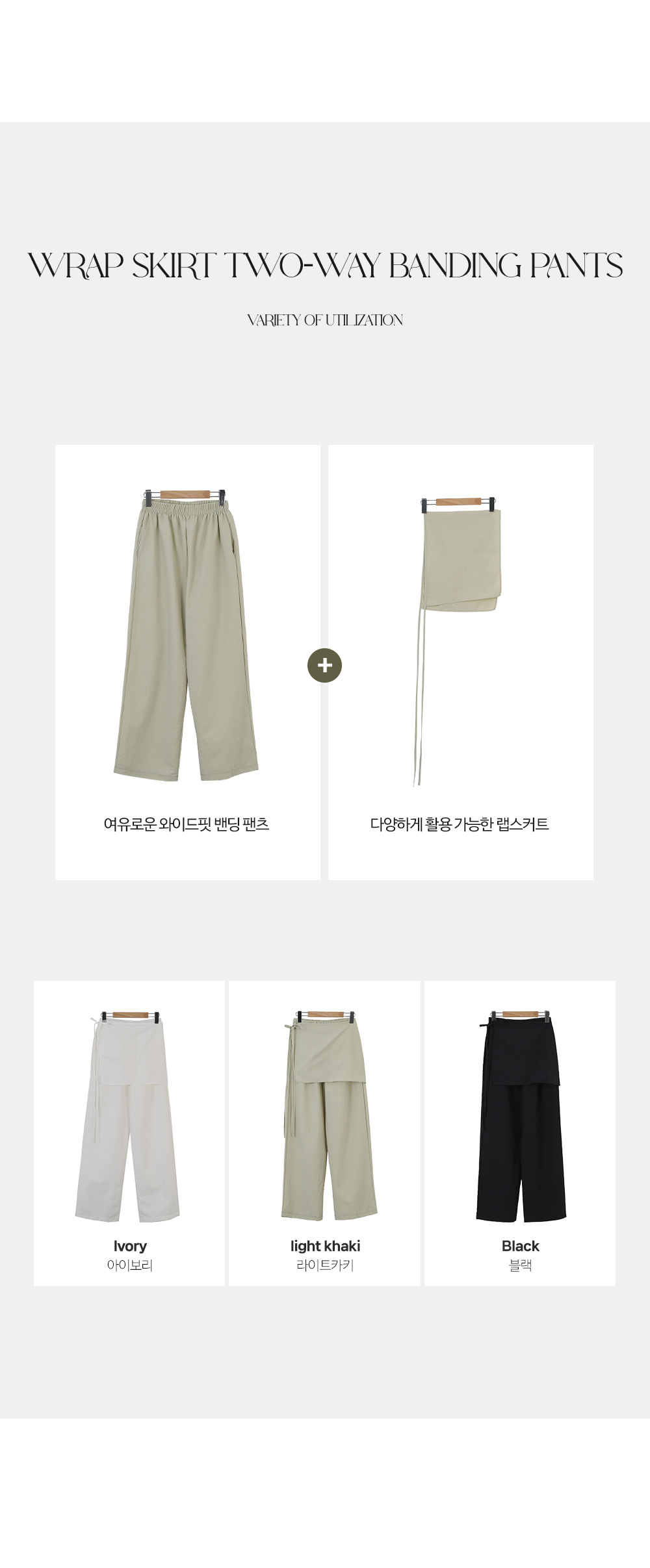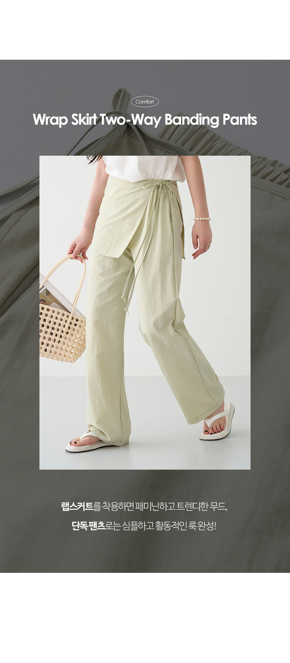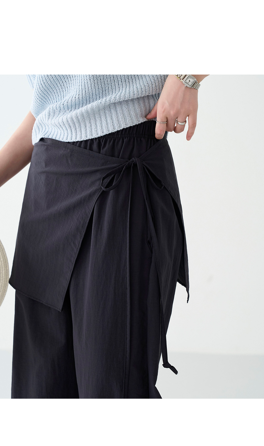 - 랩스커트 디테일로 투웨이로 즐기기 좋은 팬츠