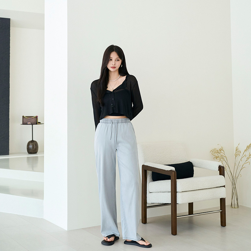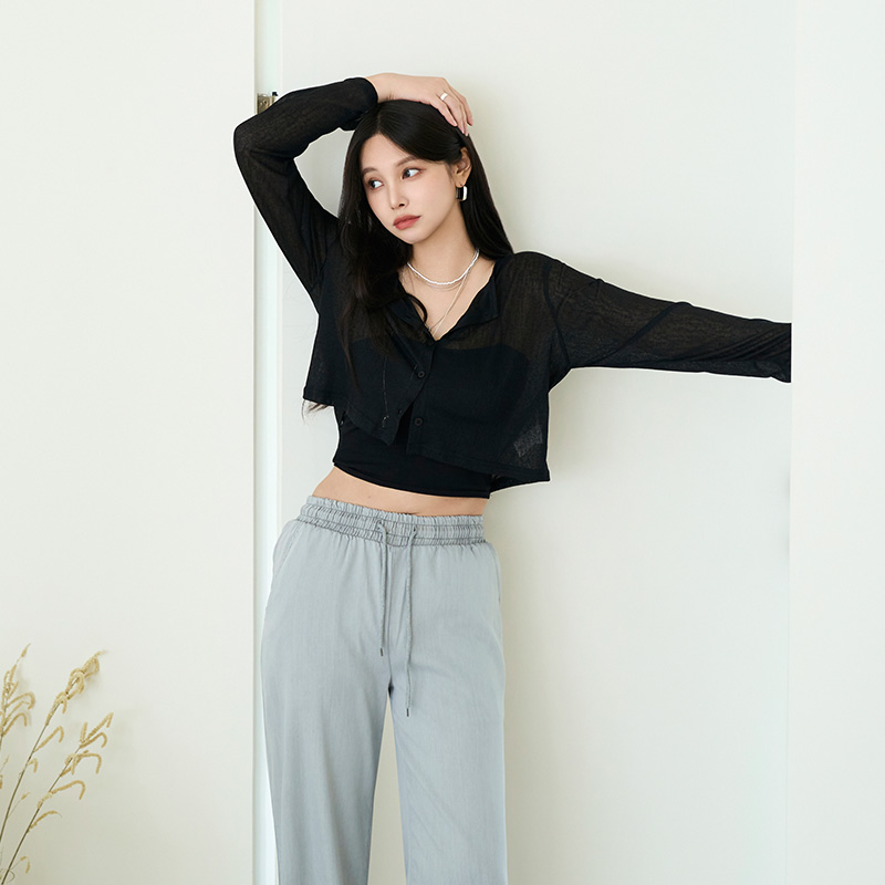 - 레이온 소재 함유로 비침이 전해지는 원단으로 소프트한 터칭감