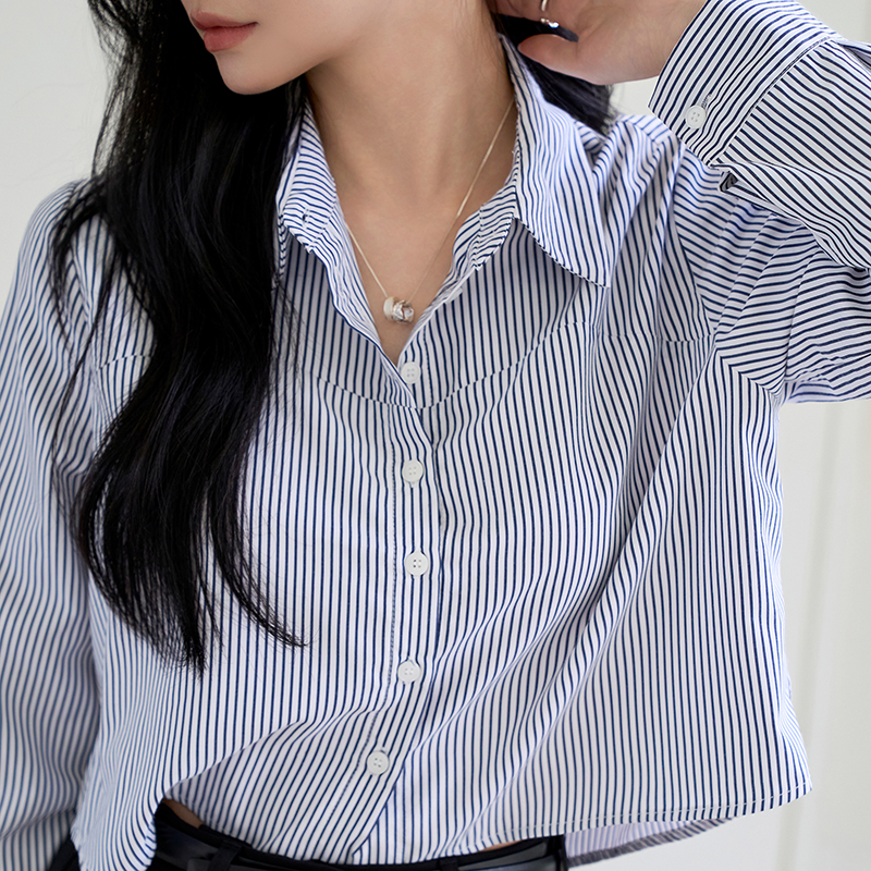 - 크롭 기장감으로 다양한 하의와 매치하기 좋으며, 다리라인이 길어보이는 효과