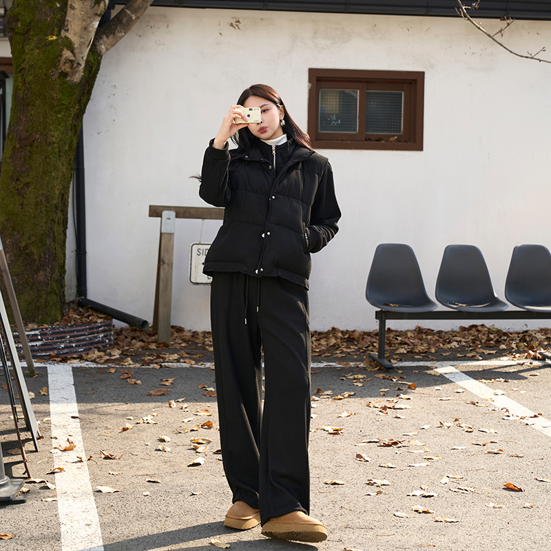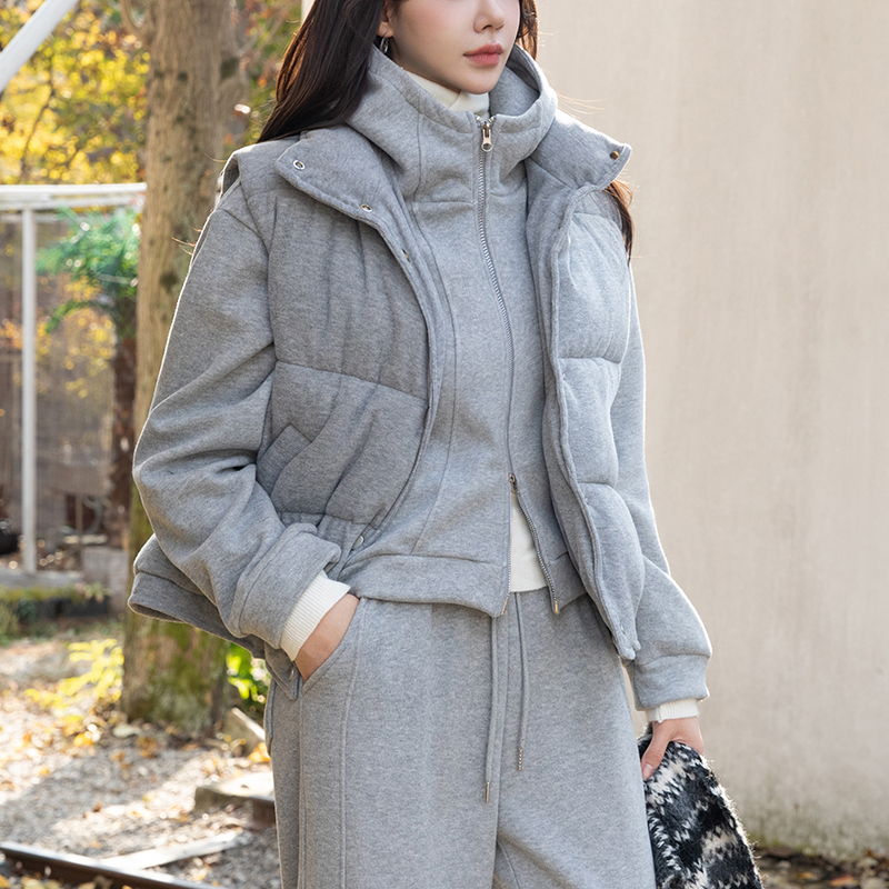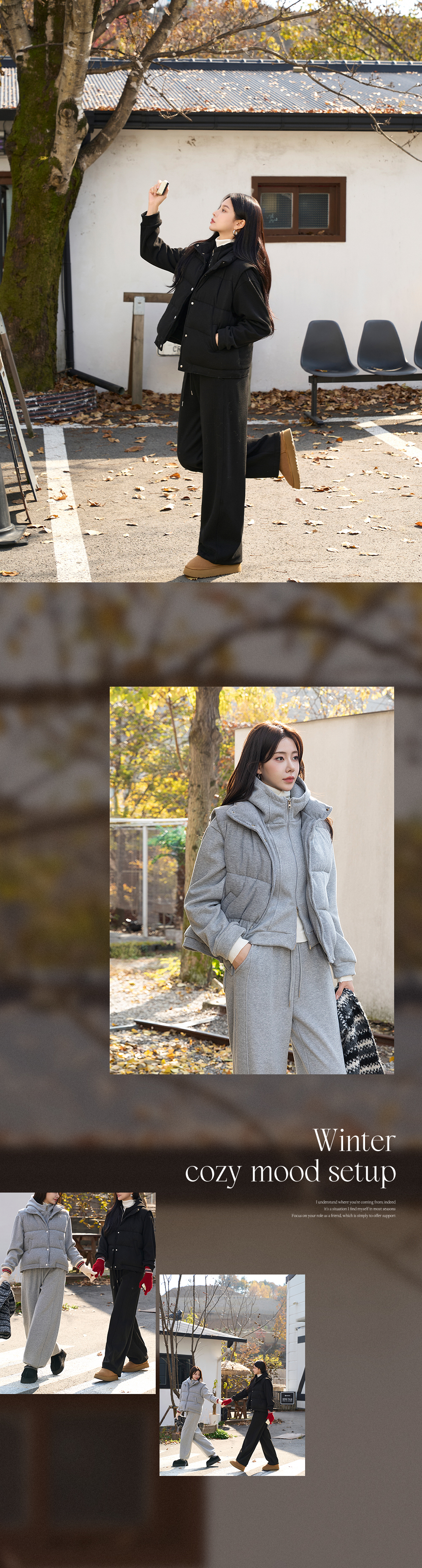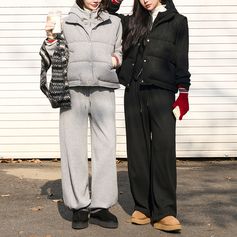 - 조끼, 후드집업, 팬츠로 구성된 3세트로 각각 단독 또는 함께 착용 가능함