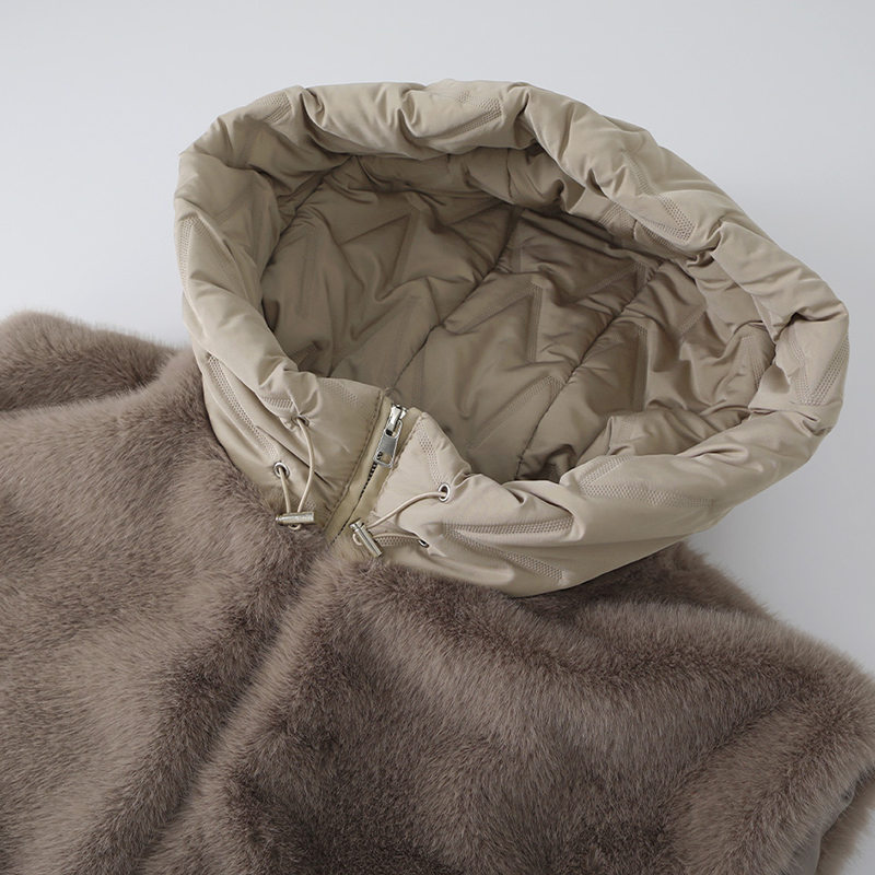 - 은은한 광택감의 패딩 후드로 조화롭게 이루어진 조끼