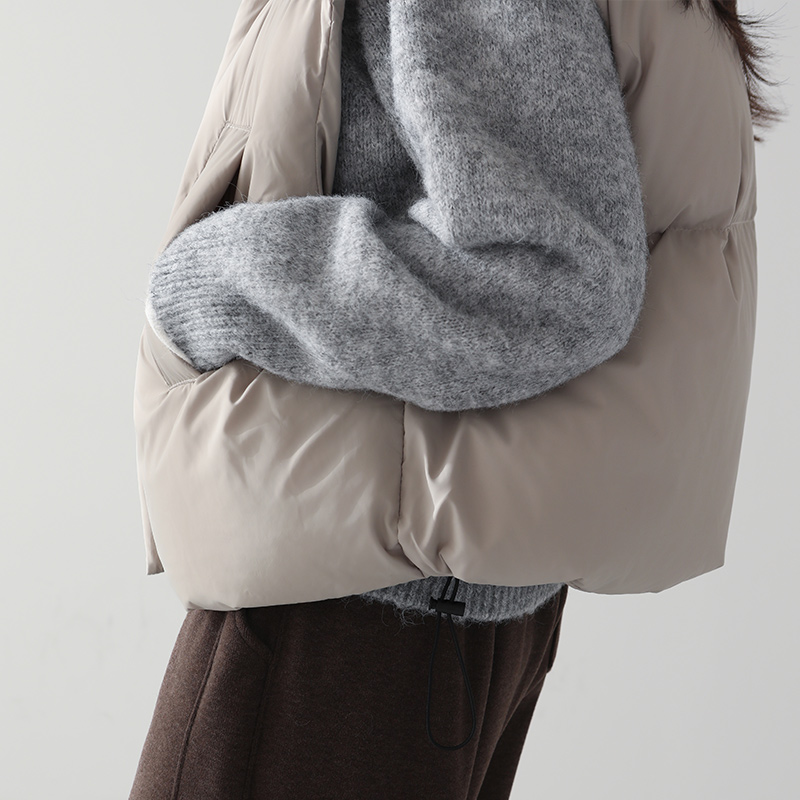 - 넥라인을 감싸주는 하이넥 디자인으로 찬 바람을