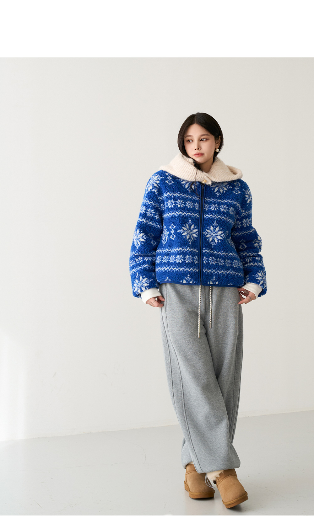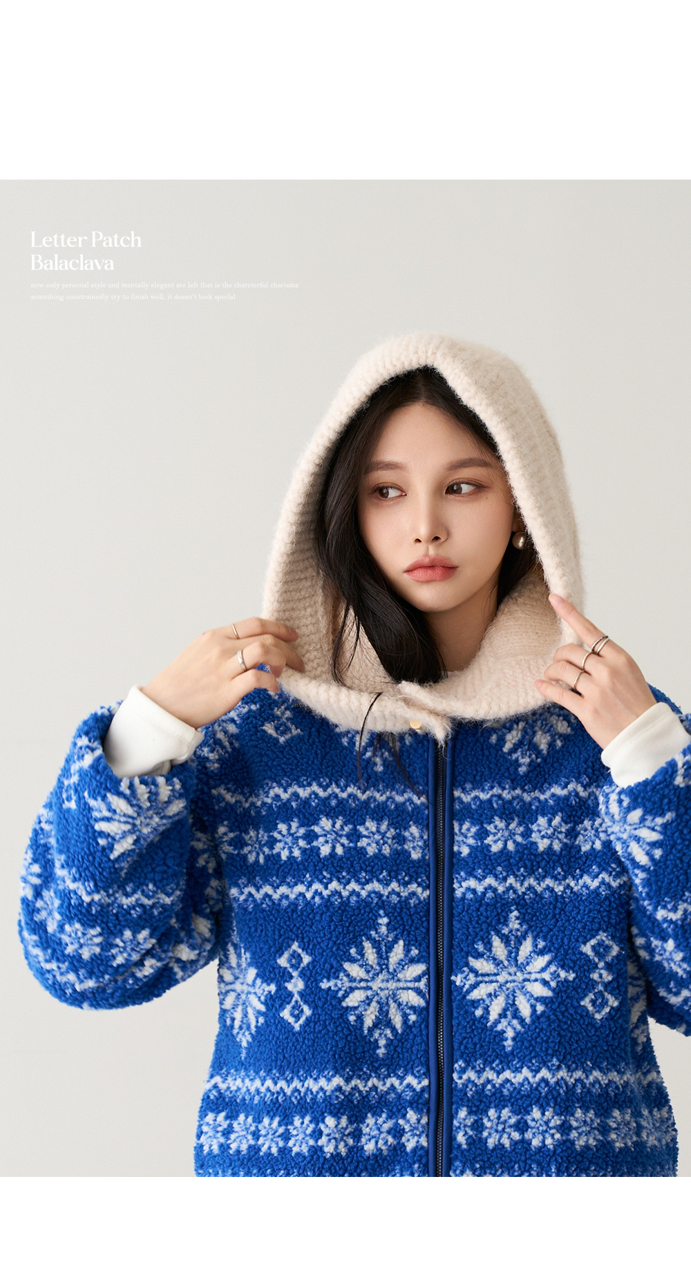 - 얼굴을 부드럽게 감싸주는 디자인으로 편안함과 코지한 실루엣