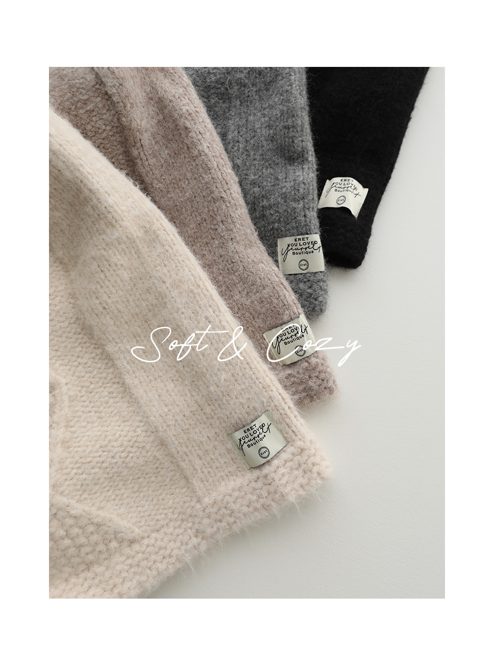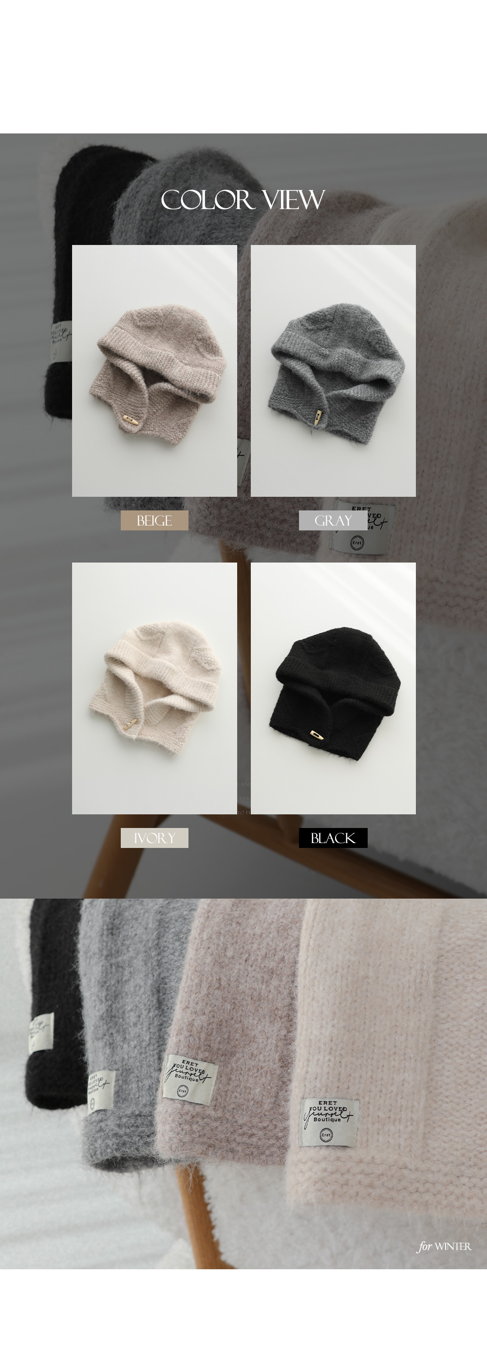 - 부드럽고 폭닥한 니트 소재로 따뜻한 착용감으로 포근한 겨울 무드